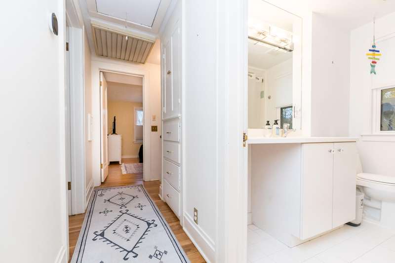 OFFER RECEIVED. Please submit all offers by Wednesday November 12th at 9:00am. Perfectly situated in the desirable Eberwhite Neighborhood. Step inside to find well preserved original wood floors, classic plaster walls, and rich wood trim and doors, creating a warm and inviting atmosphere. The bright first floor features a spacious living room and an adjacent office, ideal for remote work or relaxation. Toward the rear, a formal dining room seamlessly connects to the newly renovated kitchen. Enjoy navy blue shaker cabinets, crisp white quartz countertops, stainless steel appliances including a gas stove and built-in microwave drawer and extensive wall cabinetry for exceptional storage. The kitchen's cozy breakfast nook and generous countertop space make casual dining or working from home a breeze. Just off the kitchen, a newly renovated full bathroom offers an easily accessible walk in shower, perfect for convenience and guest use. Upstairs, the vaulted ceiling primary bedroom offers a large closet and an airy feel, while two additional bedrooms down the hall provide generous closets and gleaming hardwood floors. A large shared bathroom provides comfort and convenience. The unfinished basement presents exciting possibilities for finishing or use as a personalized fitness area. Recent structural updates include FSM installed beams and braces, complete with a transferable warranty for peace of mind. Step out from the kitchen onto a spacious deck overlooking the fenced backyard, perfect for gatherings or play. A two car garage provides ample parking and storage. Major updates include a brand new roof and skylights (2025), new windows and window treatments (2025), and a Carrier HVAC system (2024). Enjoy close proximity to Zingerman's Roadhouse, Vets Park, Eberwhite Nature Area, and easy access to I-94. Home Energy Score of 3. Download report at stream.a2gov.org.
