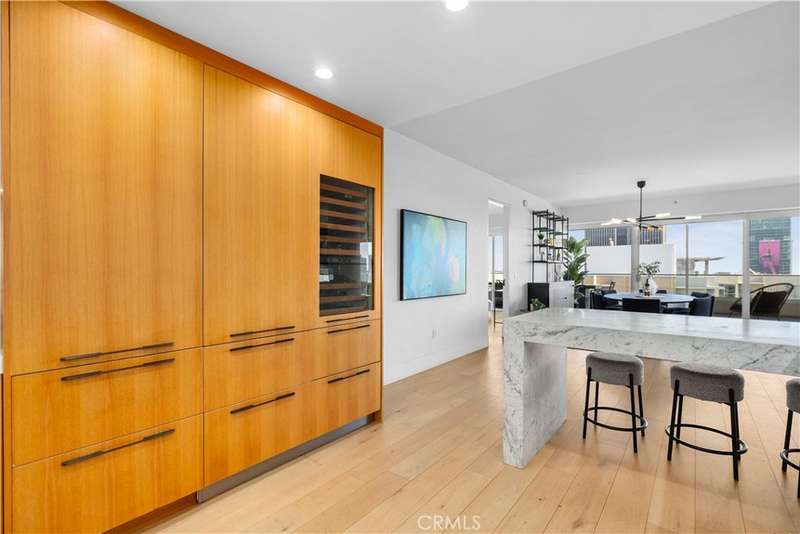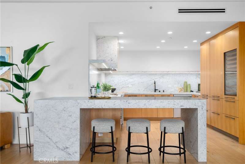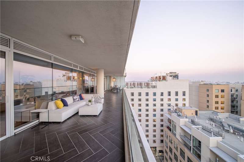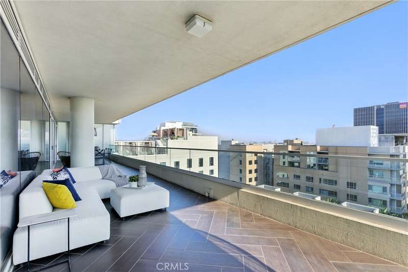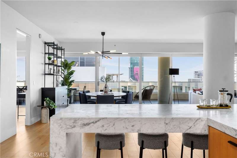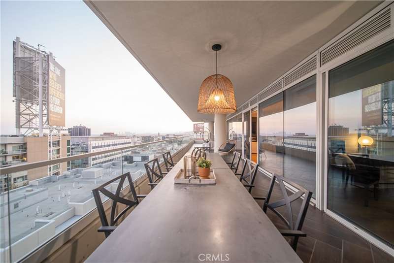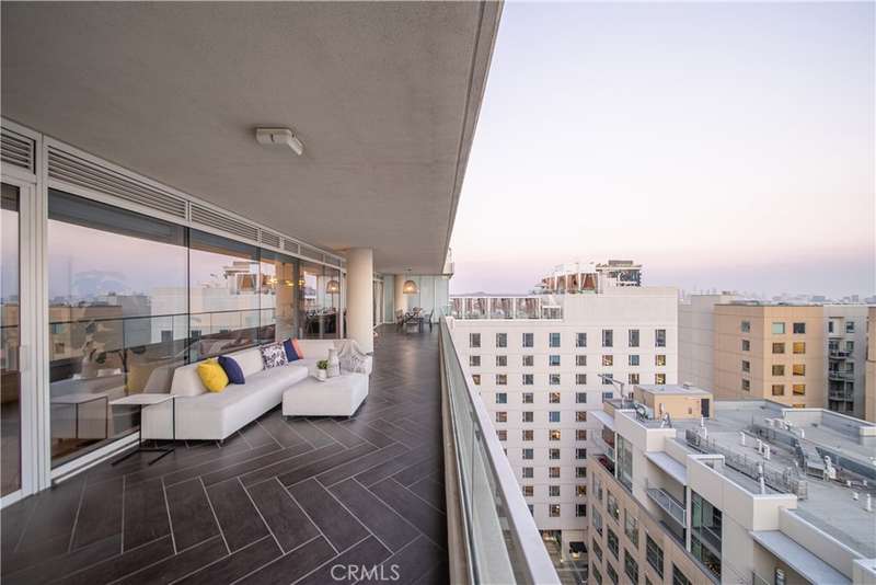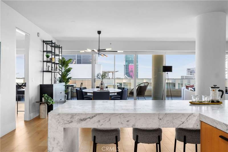 From the moment you enter, you're greeted by breathtaking, unobstructed sunset views stretching from Downtown LA to Westwood, all framed by floor-to-ceiling glass. The expansive 600-square-foot covered terrace, accessible from every room, invites you to sip cocktails at golden hour or host unforgettable soirees under the city lights. Inside, the open-concept living space is bathed in natural light, seamlessly connecting the living, dining, and kitchen areas. The chef's kitchen is a statement in itself -- custom cabinetry, a generous center island, and top-of-the-line stainless steel appliances set the stage for both intimate dinners and grand entertaining.