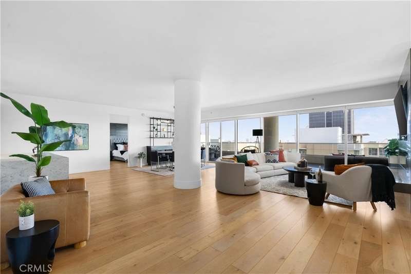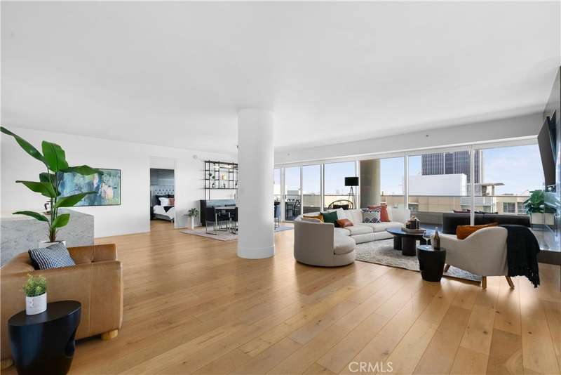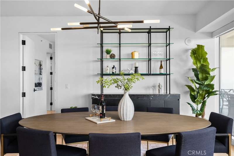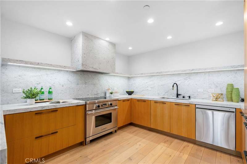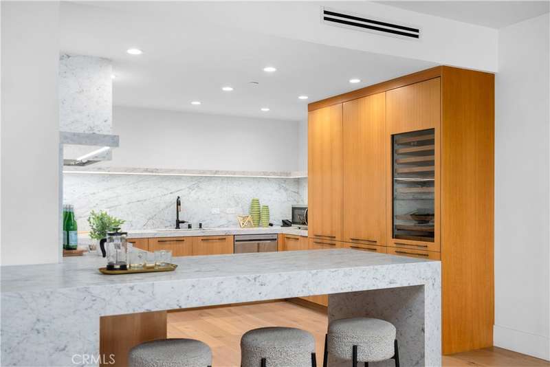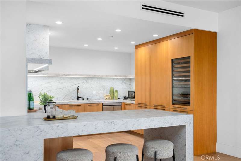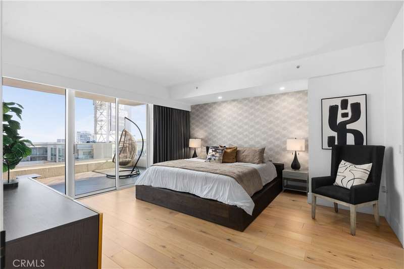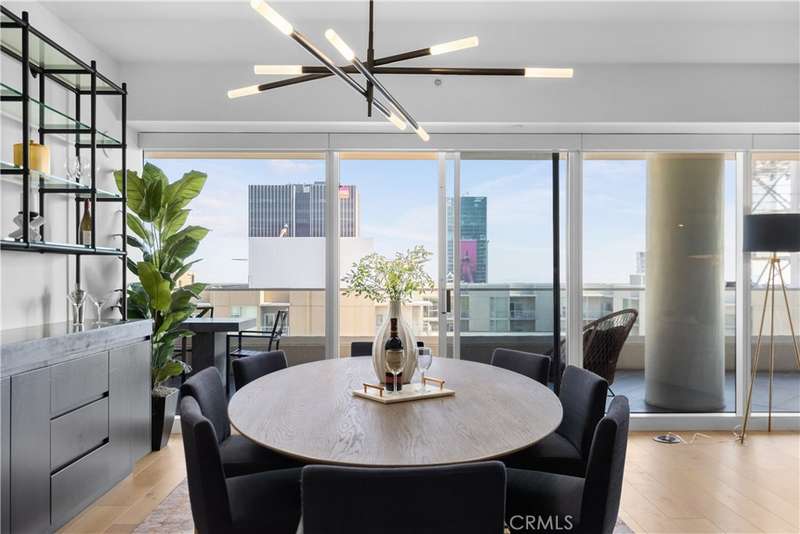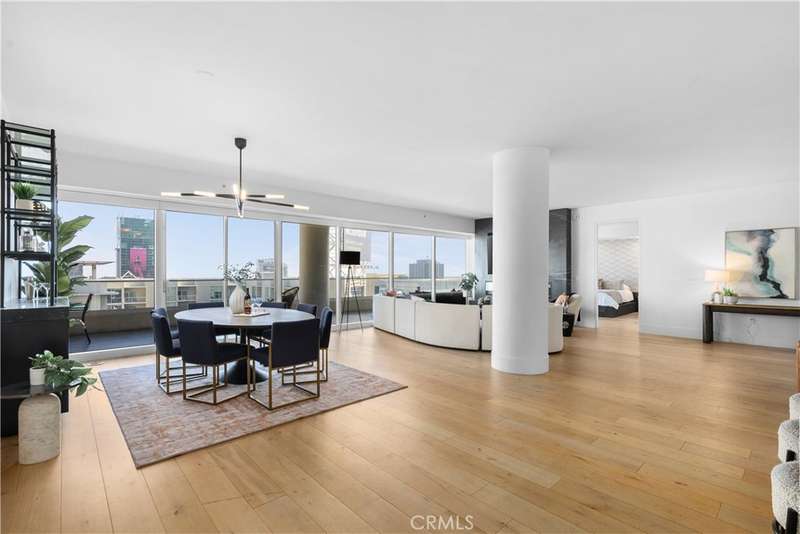 From the moment you enter, you're greeted by breathtaking, unobstructed sunset views stretching from Downtown LA to Westwood, all framed by floor-to-ceiling glass. The expansive 600-square-foot covered terrace, accessible from every room, invites you to sip cocktails at golden hour or host unforgettable soirees under the city lights. Inside, the open-concept living space is bathed in natural light, seamlessly connecting the living, dining, and kitchen areas. The chef's kitchen is a statement in itself -- custom cabinetry, a generous center island, and top-of-the-line stainless steel appliances set the stage for both intimate dinners and grand entertaining.