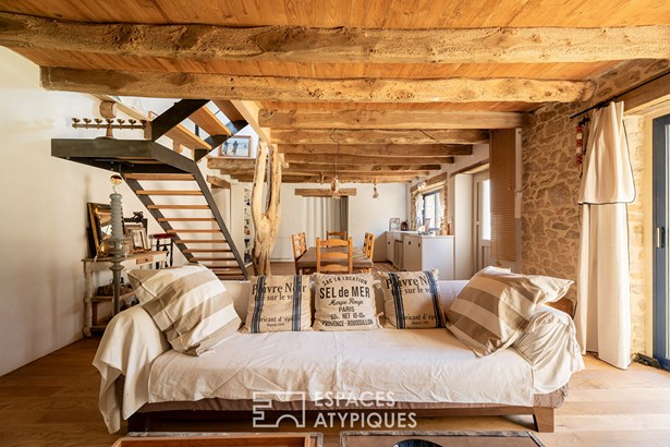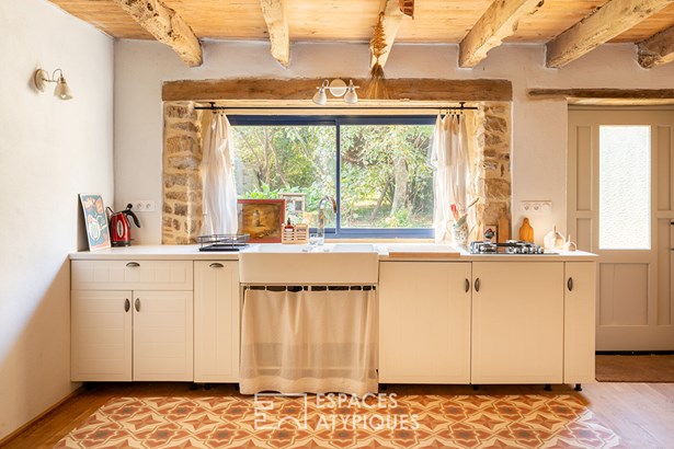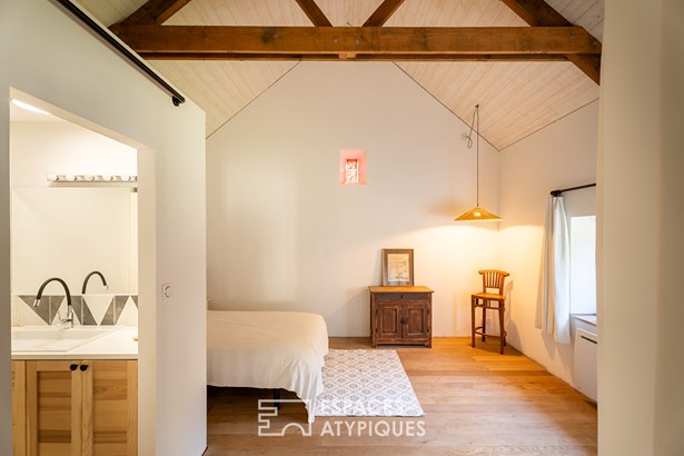 Outside, the charm operates immediately with an intimate garden and a meadow of about 8,000 m 2, ideal to enjoy the fresh air, host animals or imagine a bucolic vegetable garden. All in an absolute calm. A rare place, where every detail evokes the sweetness of living in the countryside, between authenticity and modernity.
