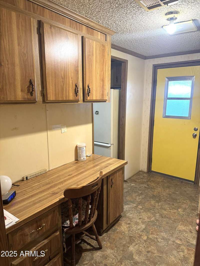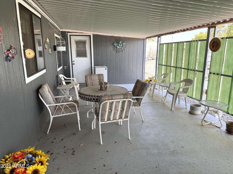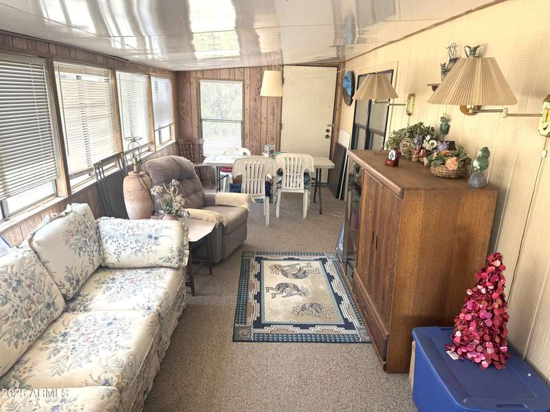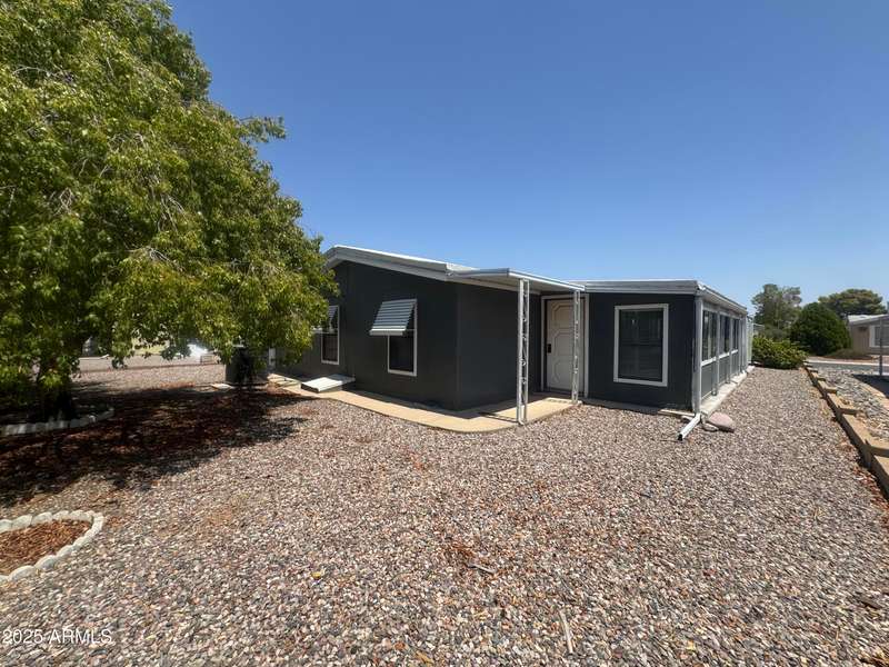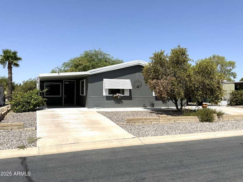 You'll love this well maintained 3 bedroom/2 bath home in Florence Gardens where you own the lot! Easy care front and back yards, plenty of parking in the 2 car carport with extra golf cart parking on the side patio, and full length Arizona Room. Inside is all electric, cook-top stove and lots of counterspace in the kitchen, dining area and spacious living room with just the right amount of furniture! Split floorplan, master bedroom has a Queen bed and master bath has a step-in shower. Two other bedrooms are large and one is set up as an office with workspace. Full size washer/dryer in laundry room, Arizona room is furnished as well.