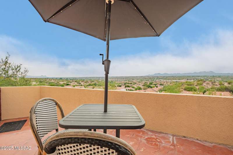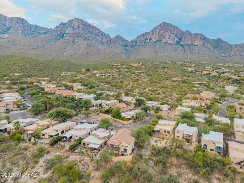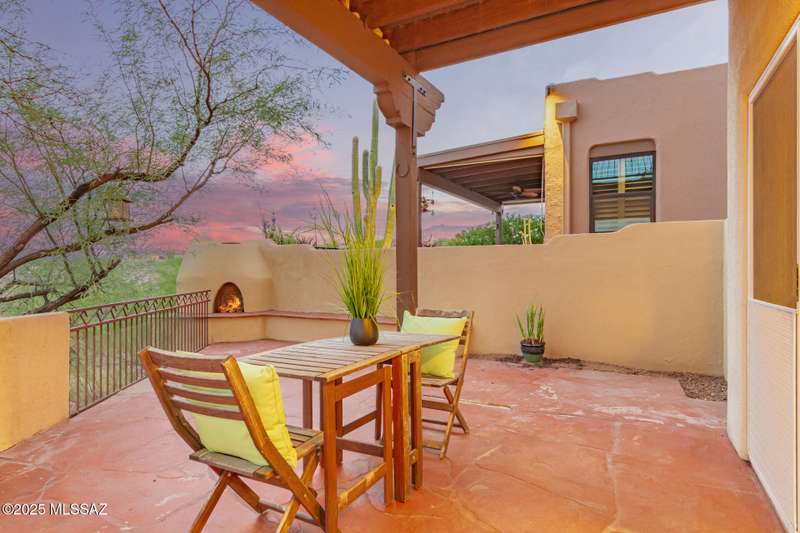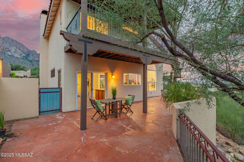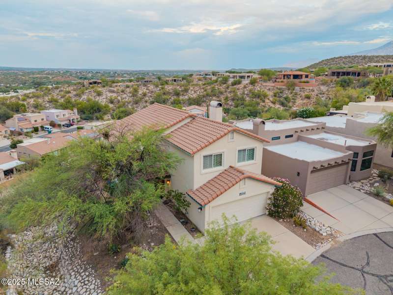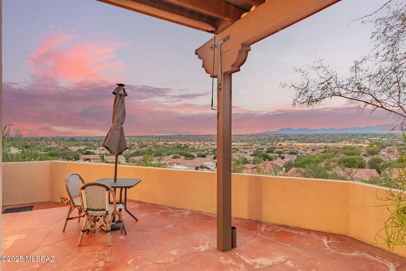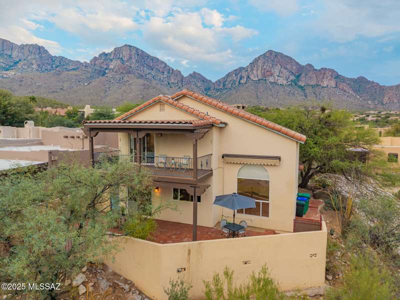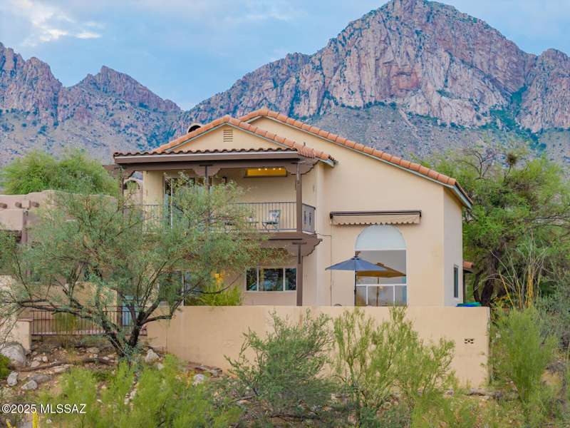Beautiful 2-story, 3-bedroom, 3-bathroom home situated on a PREMIUM LOT in the prestigious gated community of LA RESERVE in Oro Valley. Enjoy UNOBSTRUCTED CITY LIGHTS, SWEEPING VIEWS of Pusch Ridge & BREATHTAKING SUNSETS from the upstairs balcony. This bright, airy home features MODERN FINISHES, FRESH INTERIOR PAINT & VIEWS FROM EVERY WINDOW. The inviting kitchen opens to a cozy living area w/ a GAS FIREPLACE, perfect for entertaining. The PRIMARY ENSUITE includes a PRIVATE BALCONY, DUAL CLOSETS & a LARGE WALK-IN SHOWER. Relax outdoors on the PATIO W/ A BEEHIVE FIREPLACE, surrounded by natural desert beauty & local wildlife. Equipped w/ both AC & EVAP COOLING. Walking distance to the COMMUNITY POOL/SPA, this home offers the perfect blend of ELEGANCE, COMFORT & SPECTACULAR VIEWS!!