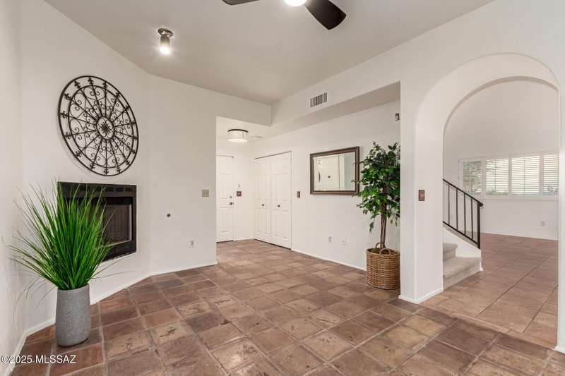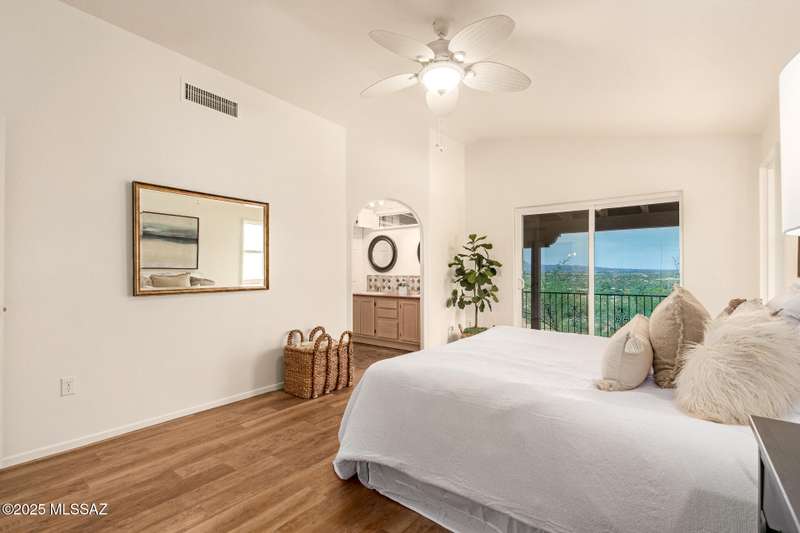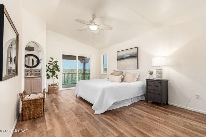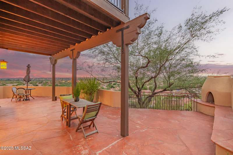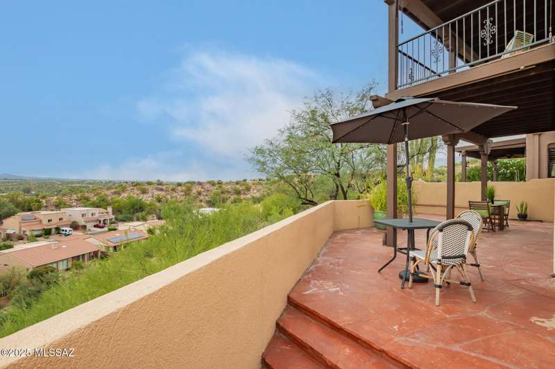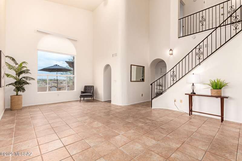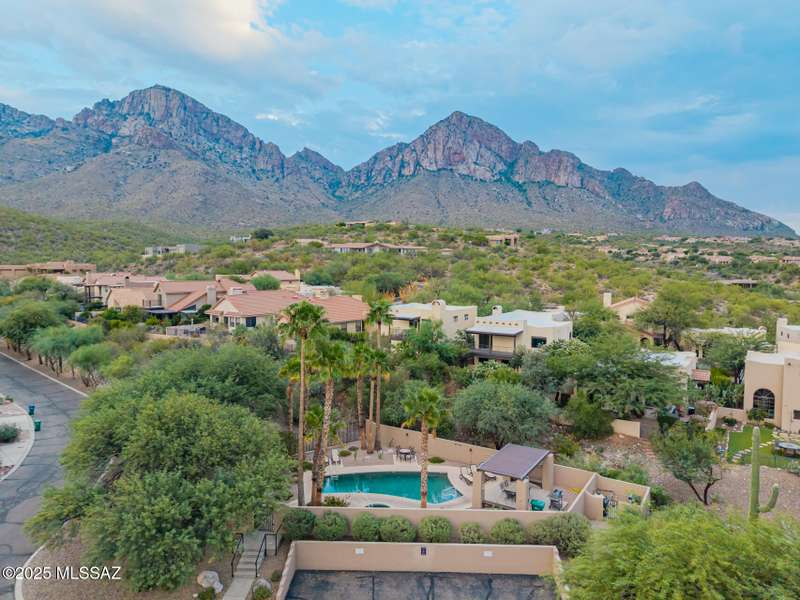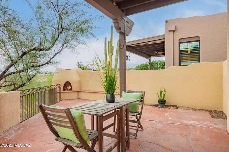 Beautiful 2-story, 3-bedroom, 3-bathroom home situated on a PREMIUM LOT in the prestigious gated community of LA RESERVE in Oro Valley. Enjoy UNOBSTRUCTED CITY LIGHTS, SWEEPING VIEWS of Pusch Ridge & BREATHTAKING SUNSETS from the upstairs balcony. This bright, airy home features MODERN FINISHES, FRESH INTERIOR PAINT & VIEWS FROM EVERY WINDOW. The inviting kitchen opens to a cozy living area w/ a GAS FIREPLACE, perfect for entertaining. The PRIMARY ENSUITE includes a PRIVATE BALCONY, DUAL CLOSETS & a LARGE WALK-IN SHOWER. Relax outdoors on the PATIO W/ A BEEHIVE FIREPLACE, surrounded by natural desert beauty & local wildlife. Equipped w/ both AC & EVAP COOLING. Walking distance to the COMMUNITY POOL/SPA, this home offers the perfect blend of ELEGANCE, COMFORT & SPECTACULAR VIEWS!!