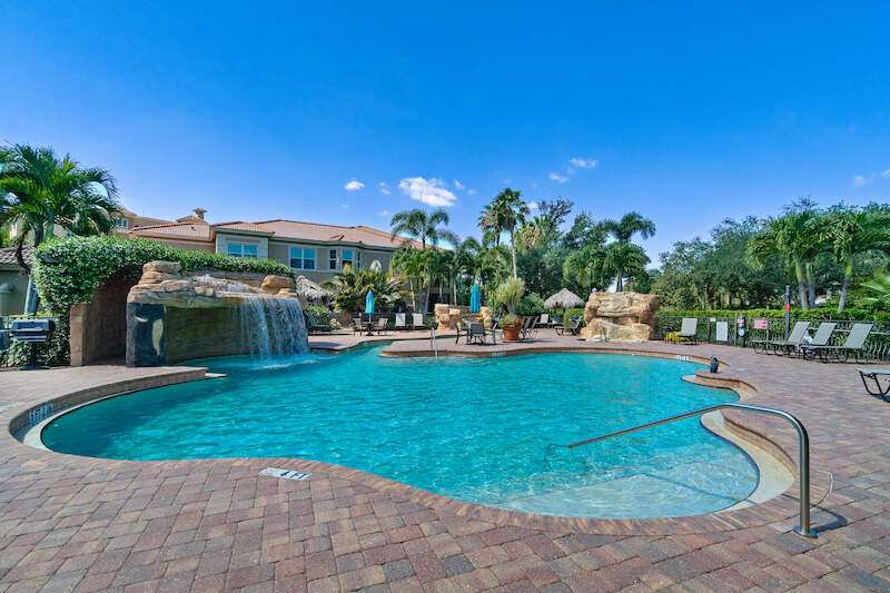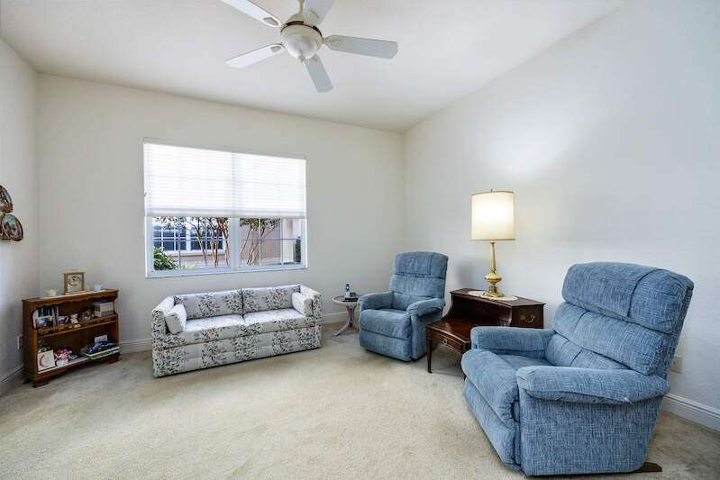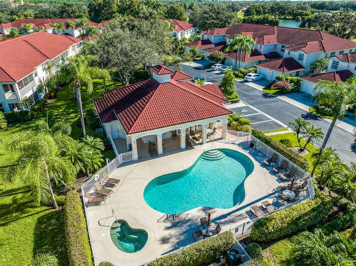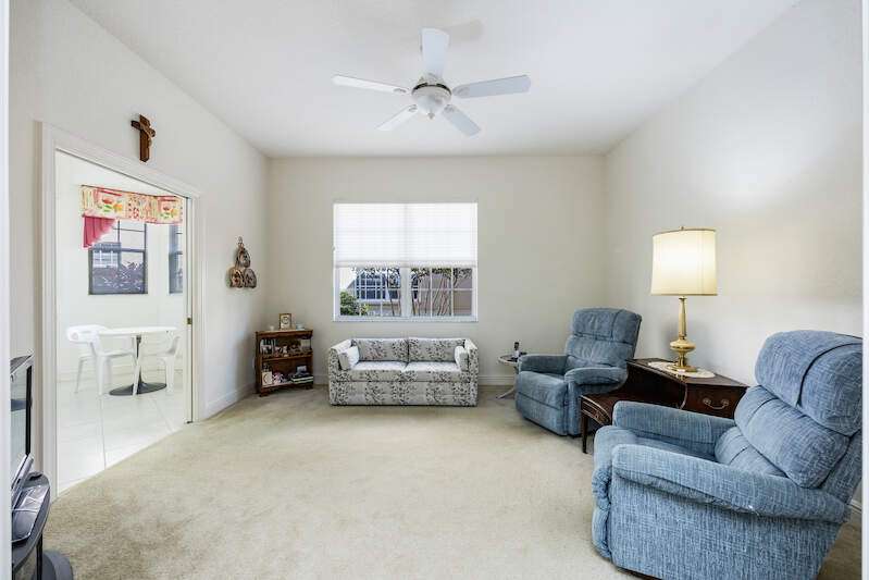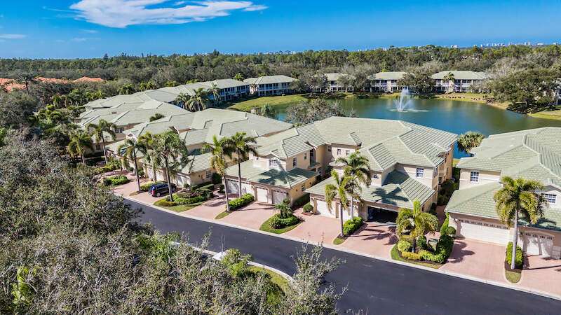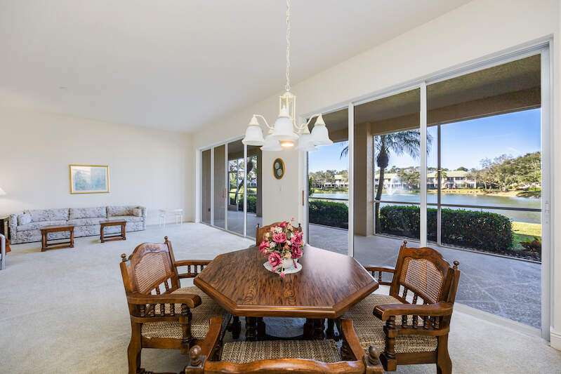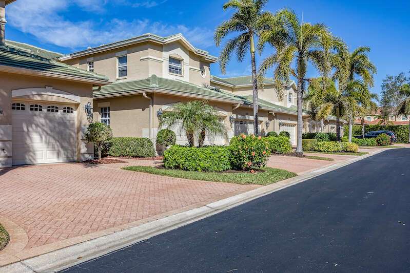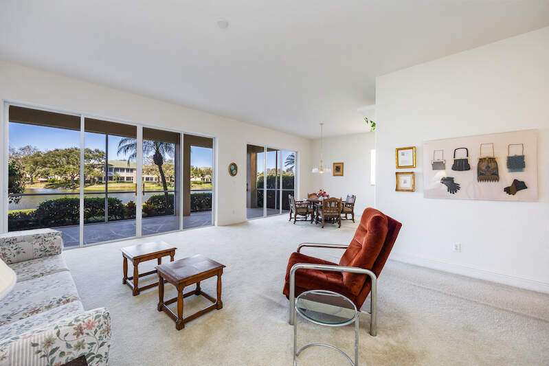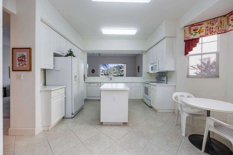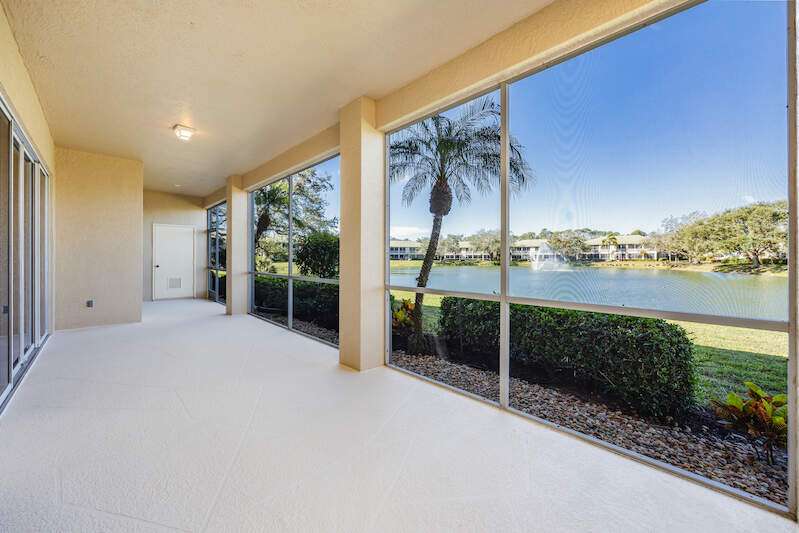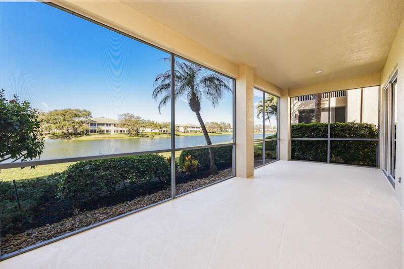 This Vineyards home has stunning LAKE views and an array of recent upgrades, making it move-in ready. Featuring brand NEW flooring, this home also boasts a NEW water heater, NEW air conditioner, NEW fixtures, NEW bathroom faucet and NEW fans. The spacious, neutral interiors create an inviting atmosphere and serve as the perfect canvas for your unique decorating style. Enjoy the convenience of a first-floor residence-no stairs to climb-and a generous TWO CAR garage providing ample storage and parking. The large DEN can be used as a 3rd bedroom. The kitchen and foyer are beautifully tiled on the diagonal, complemented by an elegant decorative inlay in the foyer. The kitchen is enhanced with upgraded easy pullout drawers, adding both style and functionality. Additional upgrades include a NEWER roof and gutters installed in 2020, offering low maintenance living and peace of mind for years to come. Accessibility is effortless thanks to the first-floor location, and the home's open layout makes entertaining and daily living a breeze. This well-maintained residence is truly a blank canvas, ready for your personal touch. Located in one of Naples' most sought-after communities, The Vineyard's offers optional membership to the award-winning Vineyards Country Club. Take advantage of this opportunity to enjoy a vibrant community lifestyle with all the modern luxuries and conveniences you deserve.
