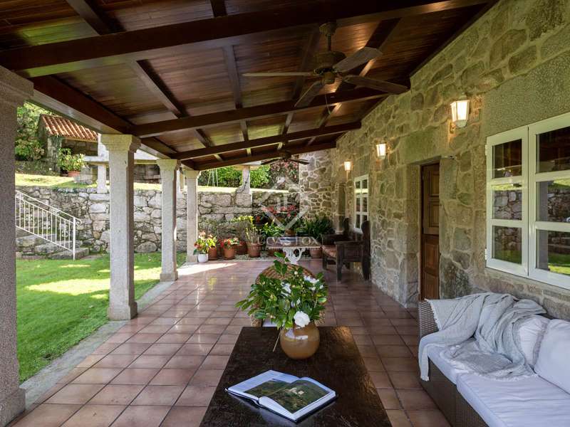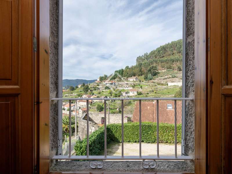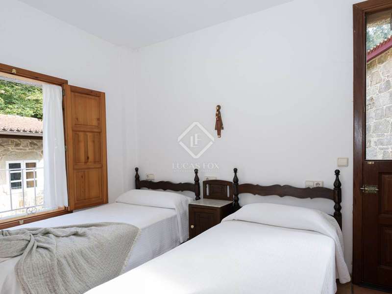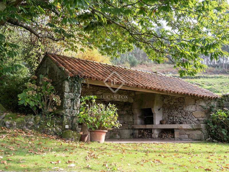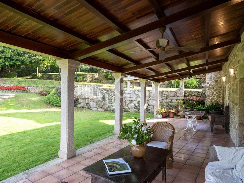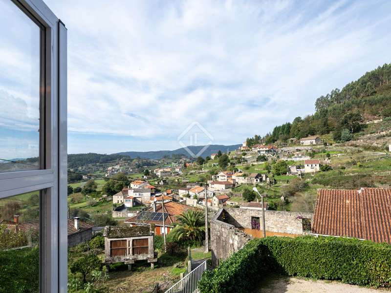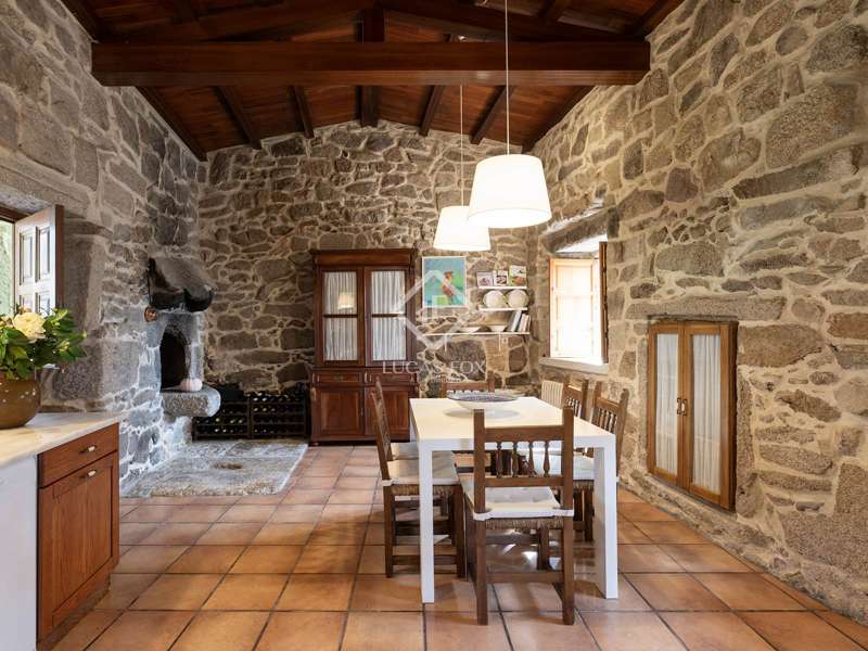 Inland from Pontevedra city centre, we find this charming exquisite property for sale with exquiste taste. The property is situated on a small hilltop offering lovely views of the valley and in a small village area. The villa offers a unique interior layout and a beautiful garden area with a fantastic orientation. The house was exquisitely restored in 2003, maintaining the initial structure, preserving the rustic beauty, and providing higher ceilings, design, warmth, and comfort. It has a large porch facing the garden section with a swimming pool, a large 50 m2 living-dining room with high wooden ceilings, and a large kitchen that preserves details such as the artisan oven; the night area is on an upper level, which is accessed by five stairs from the living room; this area has unbeatable views and tranquillity, and has three bedrooms and two bathrooms, one of them en suite and with a large dressing area. The ground floor is accessed through the courtyard and is currently divided into a family room, a games area, three bedrooms, a bathroom, and a utility room. There is also a large storage area. In the exterior section, we find the covered porch overlooking the swimming pool and barbeque area, and there is exterior parking for up to four vehicles. An old granary and a barbecue area with a restored wine press complete the buildings in a well-kept and consolidated garden. The swimming pool is spa-style and cleaned with saline electrolysis; communal water tanks have a large capacity for several neighbours, so water is free and abundant. The environment is family-friendly, and amenities, such as restaurants and schools, are nearby. It is also very well connected by road to the Pontevedra city centre. The property would be ideal for a family looking to relocate to the area close to Pontevedra city centre and Vigo. It is also a perfect summer home, as the region benefits from lovely rivers nearby and hiking trails to enjoy with family and friends.