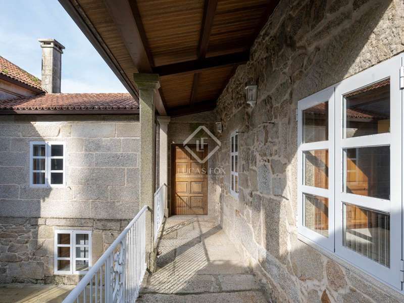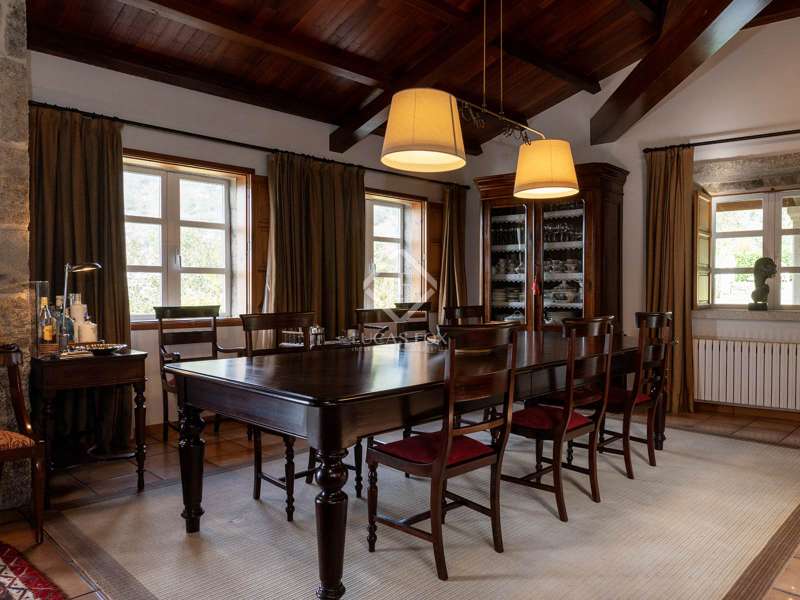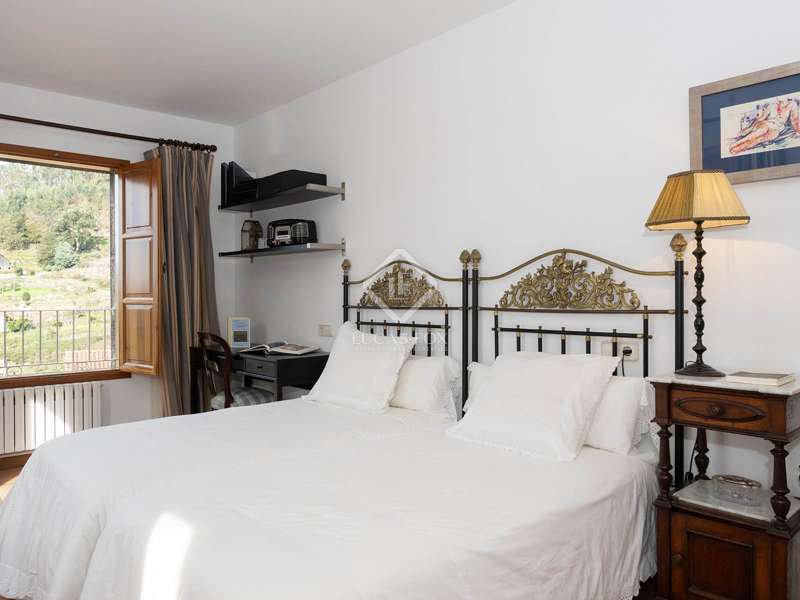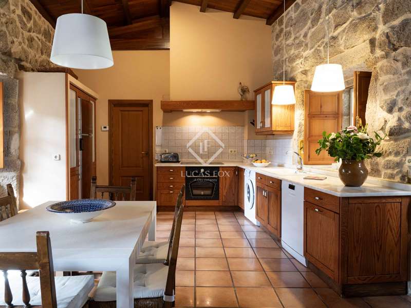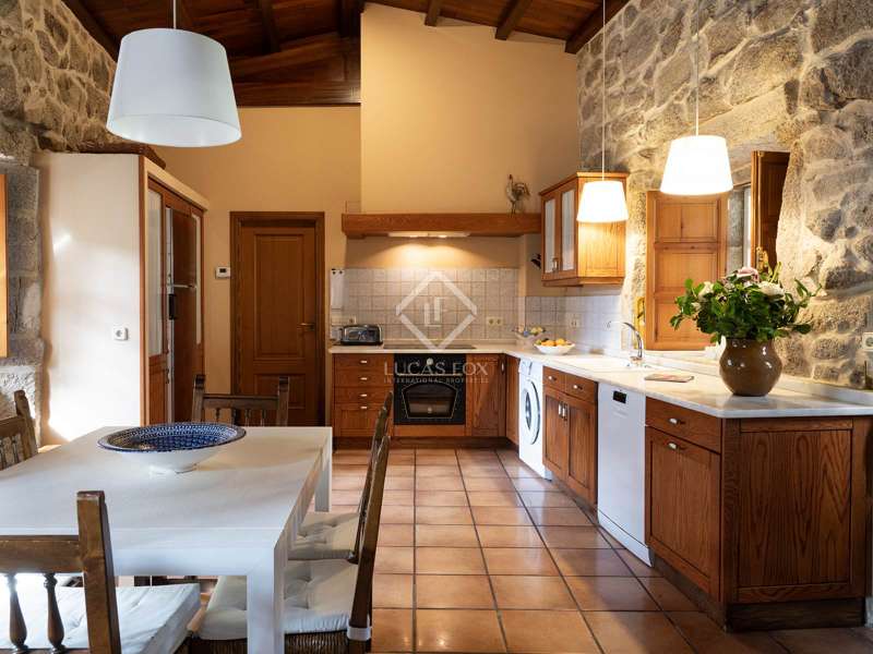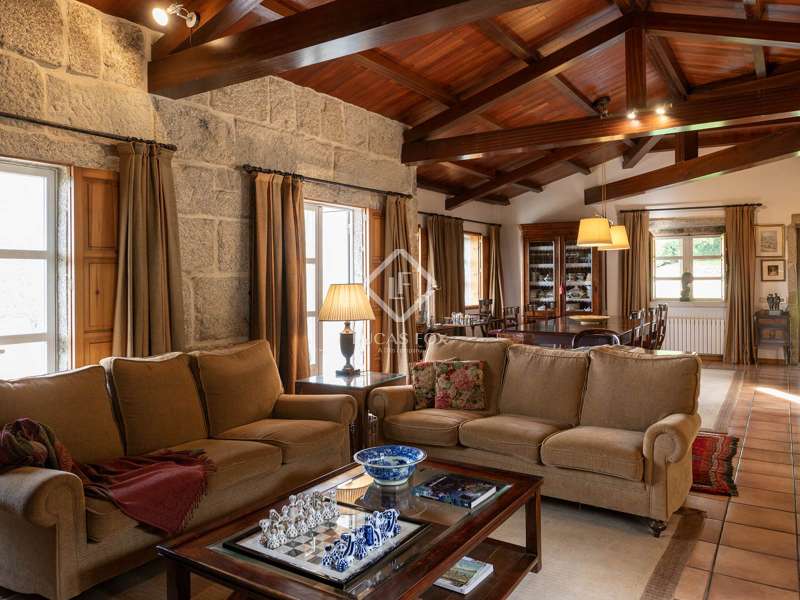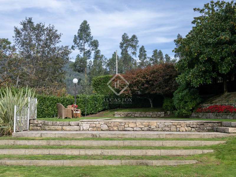 Inland from Pontevedra city centre, we find this charming exquisite property for sale with exquiste taste. The property is situated on a small hilltop offering lovely views of the valley and in a small village area. The villa offers a unique interior layout and a beautiful garden area with a fantastic orientation. The house was exquisitely restored in 2003, maintaining the initial structure, preserving the rustic beauty, and providing higher ceilings, design, warmth, and comfort. It has a large porch facing the garden section with a swimming pool, a large 50 m2 living-dining room with high wooden ceilings, and a large kitchen that preserves details such as the artisan oven; the night area is on an upper level, which is accessed by five stairs from the living room; this area has unbeatable views and tranquillity, and has three bedrooms and two bathrooms, one of them en suite and with a large dressing area. The ground floor is accessed through the courtyard and is currently divided into a family room, a games area, three bedrooms, a bathroom, and a utility room. There is also a large storage area. In the exterior section, we find the covered porch overlooking the swimming pool and barbeque area, and there is exterior parking for up to four vehicles. An old granary and a barbecue area with a restored wine press complete the buildings in a well-kept and consolidated garden. The swimming pool is spa-style and cleaned with saline electrolysis; communal water tanks have a large capacity for several neighbours, so water is free and abundant. The environment is family-friendly, and amenities, such as restaurants and schools, are nearby. It is also very well connected by road to the Pontevedra city centre. The property would be ideal for a family looking to relocate to the area close to Pontevedra city centre and Vigo. It is also a perfect summer home, as the region benefits from lovely rivers nearby and hiking trails to enjoy with family and friends.