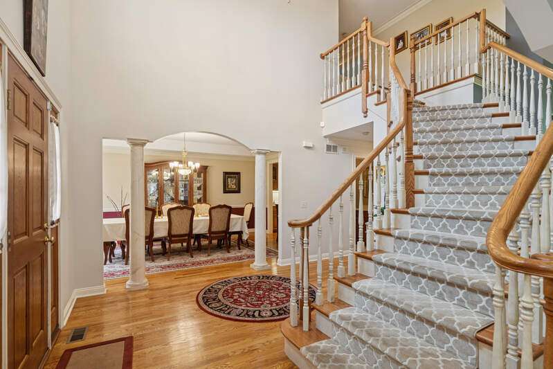 Impressive 4-bedroom, 5.5-bath custom-built home located in the sought-after Lake Somerset community. This spacious residence features a formal dining room with elegant custom trim and butlers pantry, a living room, and family room with vaulted ceilings, and expansive windows offering views of the beautifully landscaped yard. The kitchen is equipped with birch wood cabinetry, a breakfast area, and opens to the main living spaces-perfect for everyday living and entertaining. The first floor also includes an office, powder room, and an additional full bathroom. Upstairs, the oversized primary suite includes a large en-suite bath. Two bedrooms share a stylish updated Jack-and-Jill bath, while the fourth bedroom offers its own private en-suite. A spacious laundry room and a bonus room ideal for a second office or hobby space complete the upper level. The finished basement includes a full bathroom and offers excellent space for a recreation room, home gym, or guest suite. Step outside to a private backyard retreat featuring professional landscaping and a large brick paver patio-perfect for outdoor entertaining.