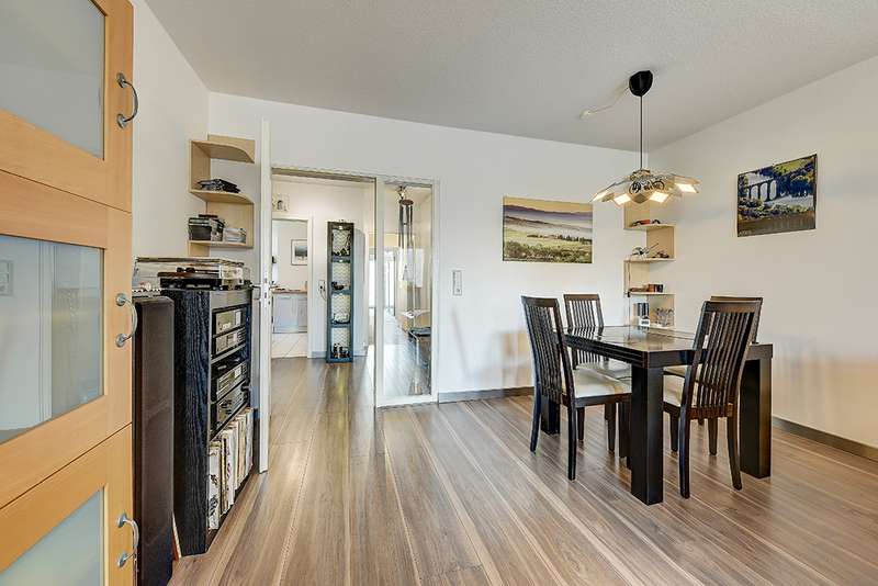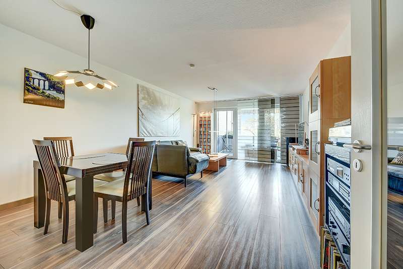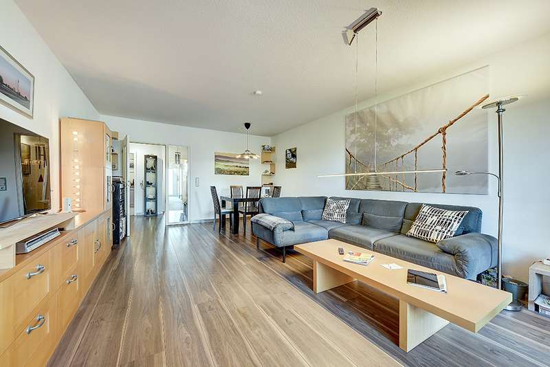 An attractive apartment is for sale, which was built ready for occupancy in 2000 and has been in a well-kept condition ever since. With a living area of approx. 93 m², this property offers enough space for couples or small families. The well thought-out room layout comprises a total of three rooms, including two bedrooms, which ensure a comfortable night's sleep. The spacious living room is characterized by its bright and friendly atmosphere and invites you to linger. From here, you have access to a balcony that offers a relaxing view of the surrounding fields. This is the perfect place to end the day or enjoy your first coffee in the morning. The kitchen is equipped with a well thought-out fitted kitchen that is both functional and visually appealing. Modern kitchen appliances, some of which have been updated in recent years, as well as plenty of storage space make cooking a pleasure. The apartment has two bathrooms, which are also well maintained and offer comfort for families or guests. There are also custom-made built-in units that create additional storage space and are perfectly integrated into the overall concept of the apartment. The property includes two parking spaces in the underground garage, which is a great advantage, especially in urban areas like this one. There is also a bicycle parking space, which rounds off the package for mobility and convenience. The central heating provides pleasant warmth in the cold season. Another highlight of the apartment is the spacious floor plan, which ensures an open yet clear room layout. The fixtures and fittings are of a normal standard, comprising solid materials and a timeless design. This apartment is ideal for people who value a well-kept property in a quiet residential area without having to forego the amenities of the city. The infrastructure offers good public transport connections as well as shopping facilities, schools and medical facilities nearby. Contact us for more information or to arrange a viewing. Take the opportunity to acquire a property that offers comfort, security and a well thought-out room layout in an attractive environment.