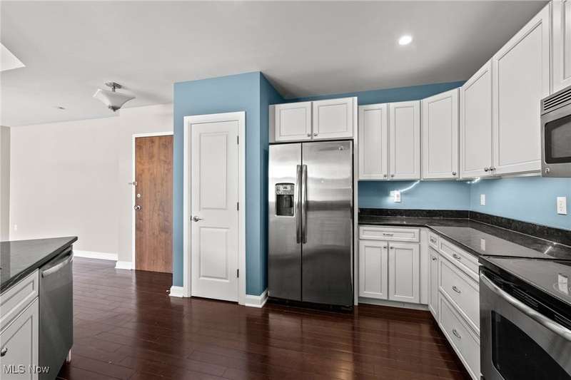 Easy, Upscale Urban Living in the Lofts Building at Bluestone Condominiums. This Bright & Spacious 4th Floor Unit Features Three Bedrooms, Two Full Baths and a Walk-Out Terrace to Enjoy the Outdoors! Open Concept Living-Dining Areas with Hardwood Flooring and Large Windows. The Kitchen Features Abundant Granite Counters that Pop Against White Cabinetry & Stainless Steel Appliances. A Breakfast Bar Provides Counter Seating. The Primary Suite Features Walk-In Closets & Private Bath with Tiled, Walk-In Shower, Soaking Tub and Large Double Sink Vanity. Convenient In-Suite Laundry Room. Includes an Indoor Heated Garage parking Space. Plenty of Exterior Parking for Guests. Maint. Fee Includes Gas, Water & Sewer. Minutes from Northeastern Ohio's Cultural and Artistic Hub, Medical, University, Shopping & More!