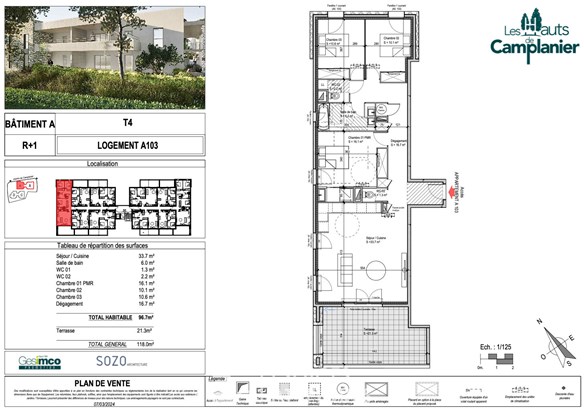 It has a kitchen, three bedrooms including a master suite, a bathroom where the buyer will be able to choose the color of the sink and cupboards according to their tastes. This apartment has 2 closed garages. In addition, the property contains reversible air conditioning in the living room and bedrooms, electric roller shutters.