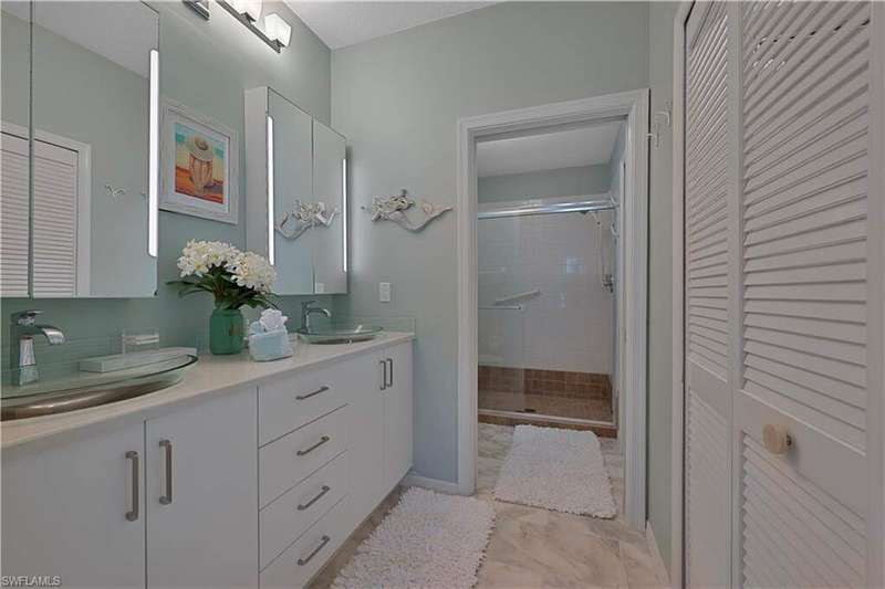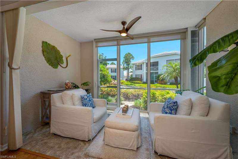A lovely Naples, Florida 3 bedroom villa with ATTACHED GARAGE in Pelican Bay and no stairs under $1 million?! YES! Located in the highest Pelican Bay elevation and highly desired X flood zone (flood insurance not required) and offering immediate rental income for Feb-April 2026 season, this beautifully remodeled first-floor condo is a rare find. Featuring 3 spacious bedrooms and 2 renovated bathrooms, the home boasts updated luxury vinyl plank (LVP) floors in the guest and second bedroom/office, elegant plantation shutters throughout, crown molding, stainless steel appliances including a DOUBLE oven, granite countertops, and a master suite enhanced with a newer tile floor and marble style finishes in the bathroom. Custom built-ins in the closets and bedrooms add both style and functionality. Step out into the glass-enclosed lanai with impact resistant sliders and take in serene sunset views and peaceful water features. This condo offers exclusive access to Pelican Bay's private beach club and beachfront restaurants via resident tram-perfect for relaxing along the Gulf's world famous white sands. Furnishings are negotiable, and the home has been meticulously maintained, occupied only approx. five months per year. Additional perks include all newer roofs fully paid by the association, and HOA that includes landscaping, water, sewer, cable, internet and more. Minutes to Mercato, Waterside Shops, casual and fine dining, Artis Naples, and more-this is coastal living at its best!