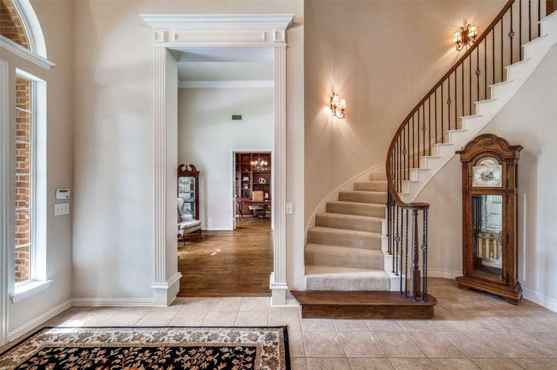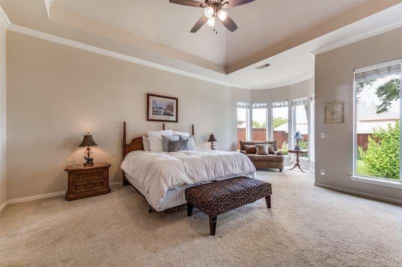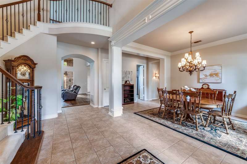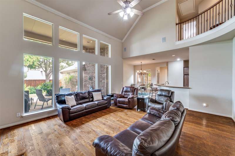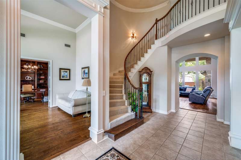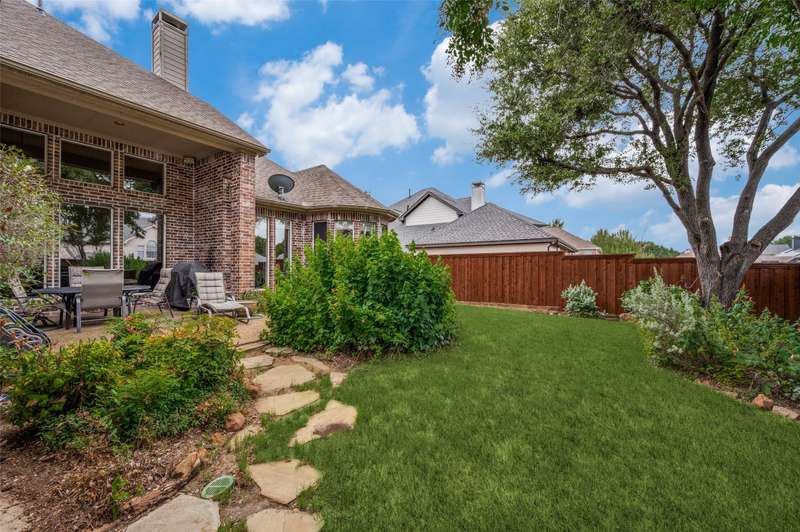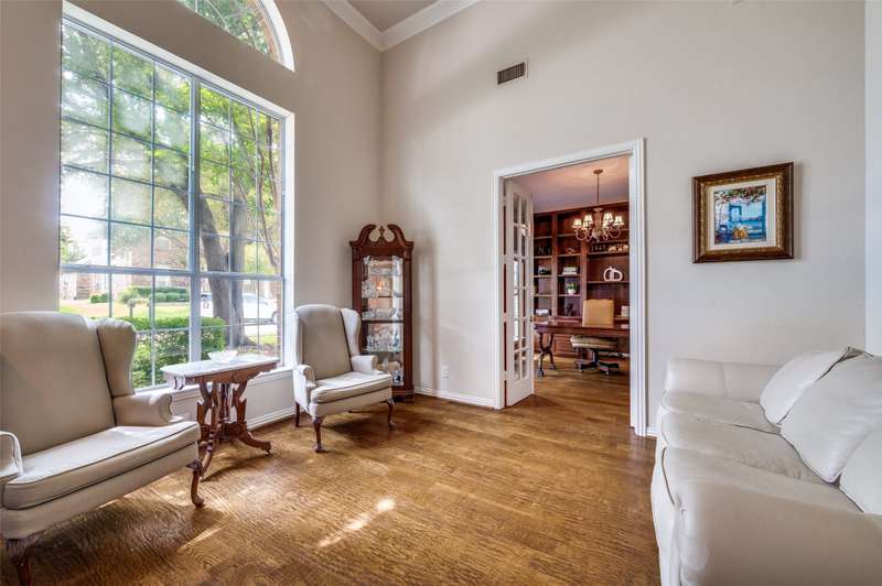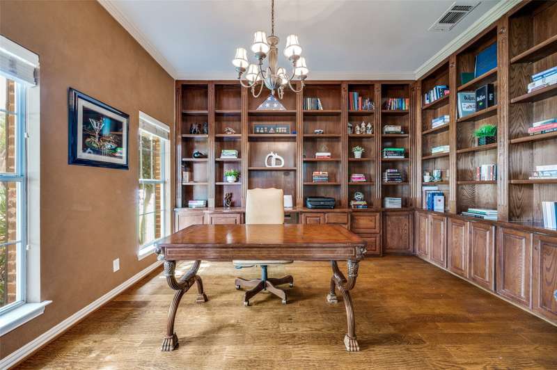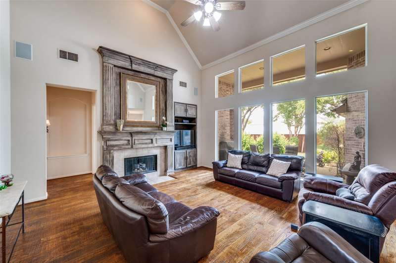 Beautifully crafted by Darling Homes, this residence is set in the desirable Lakes of Legacy community and surrounded by mature trees. Elegant details such as crown moldings, tall ceilings, and refined finishes elevate every space. The formal living and dining rooms provide a timeless backdrop for entertaining, while the large study with French doors and built-ins offers the perfect work-from-home retreat. The family room, anchored by a cozy fireplace and walls of windows, with beautiful views of the luscious, landscaped backyard. The family room flows seamlessly into the kitchen with island. A guest suite downstairs adds convenience, while the spacious primary suite boasts a sitting area and a luxurious bath. Upstairs, a game room and three additional bedrooms provide plenty of space for family and guests. Highlights include a tankless water heater (2013), new roof (2017), and surround sound system. A 3-car garage completes this exceptional property in one of the areas premier locations. Close to schools, parks and shopping.