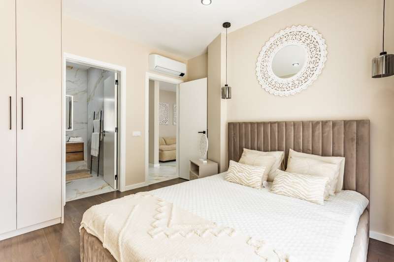 Modern and spacious 2-bedroom apartment in a residential complex in Armação de Pera, Algarve, 300 meters from the beach. Situated on an upper floor, this elegant two-bedroom apartment in Lunamar has soft, neutral colors. It has a large and bright living room, connecting harmoniously with the open plan kitchen, which is equipped and functional. The two bedrooms are spacious, with wooden floors, air conditioning, large windows and built-in closets, ensuring a bright and welcoming atmosphere. The bathrooms are fitted with hanging china, providing an elegant and modern space. The apartment is also equipped with double-glazed windows, for greater insulation efficiency, and electric shutters. The residential complex also offers a closed parking space in the garage and an elegant garden with different plants, shrubs and trees. Lunamar is in a privileged location in the picturesque but lively Armação de Pera, a fast-growing area of the Algarve. Just 300 meters from the beach, it is surrounded by restaurants, shops and sports and leisure activities. 30 minutes from Faro International Airport. CHARACTERISTICS:Area: 106 m2 | 1 139 sq ft Useful area: 71 m2 | 760 sq ft Bedrooms: 2 Bathrooms: 2 Garage: 2 Energy efficiency: A FEATURES: Kitchen equipped 2 bedrooms Balcony Garage Garden Air conditioning