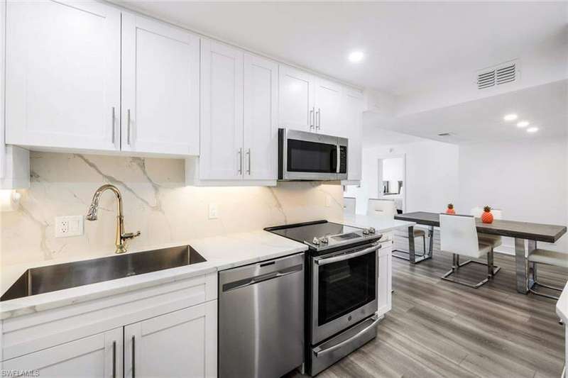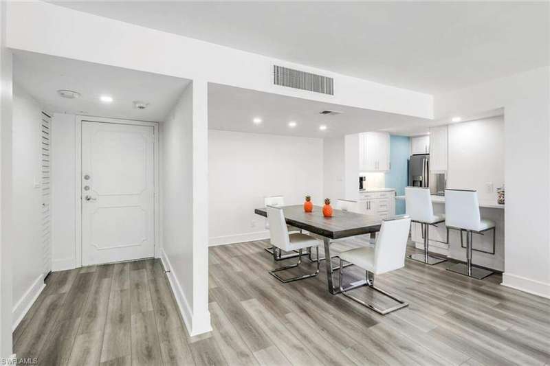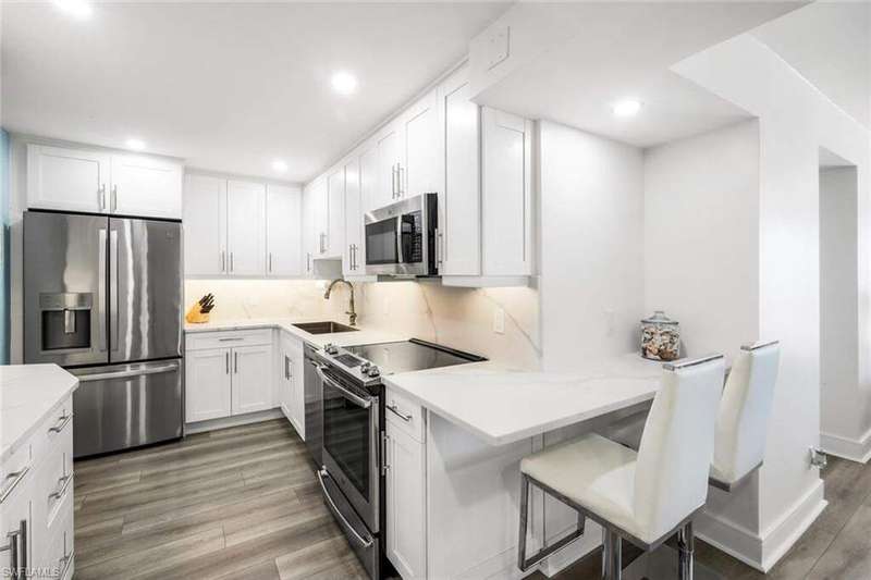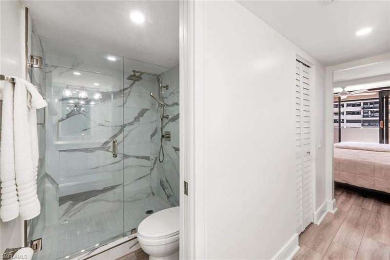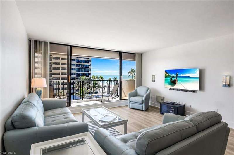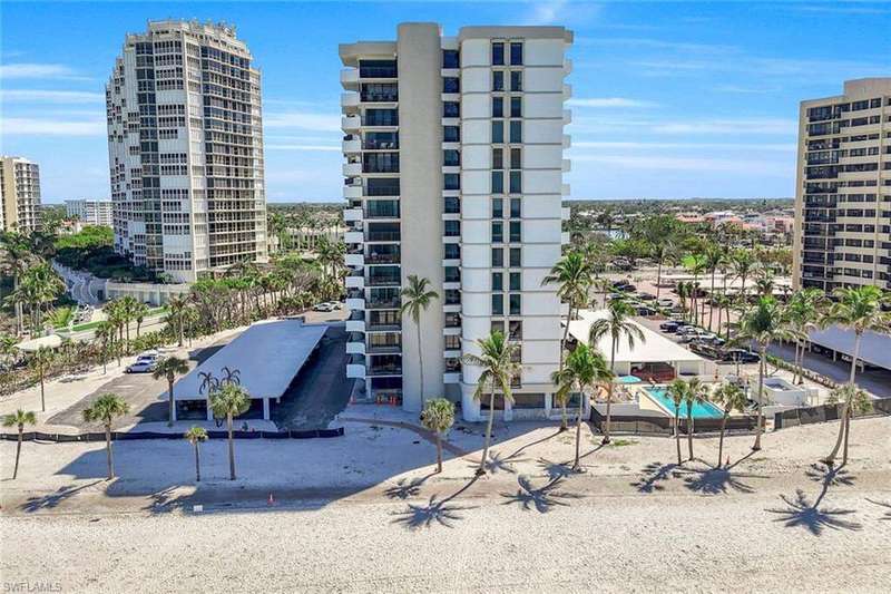 Upon entering, you are greeted by a welcoming atmosphere, where the salty breezes and toes in the sand beach access creates an instant sense of relaxation. The living area, bathed in natural light streaming through sliding glass doors to your private balcony allowing you to bask in breathtaking sunsets with Southwestern exposure. Modern design elements are seamlessly integrated throughout the interior, offering a stylish and contemporary living space waiting for you to add your personal finishing touches. A fully equipped kitchen invites culinary creativity, offering modern appliances and ample storage space for all your beachside dining essentials. The primary suite offers a peaceful sanctuary accented by quartz counters, a marble surround, & dual sinks. Discover the perfect blend of beachside living and easy access to everything Naples offers. Gulfside is perfectly positioned on the picturesque sugar sand beaches of the Gulf while walking distance to waterfront dining, and boutique shopping at the Village on Venetian Bay. The Waterside Shops, including Saks and other luxury venues, are only 1.5 mile away, while superb shopping and restaurants on Naples' 5th Avenue are just a 10-minute drive. Don't wait to enjoy your very own slice of paradise!