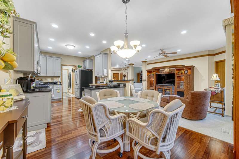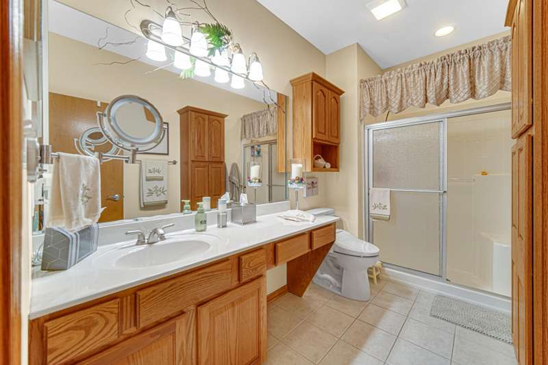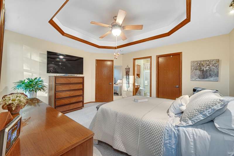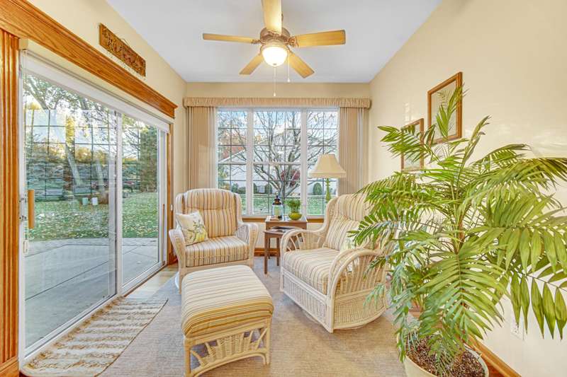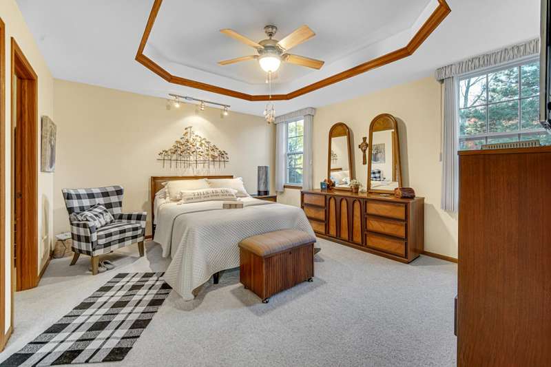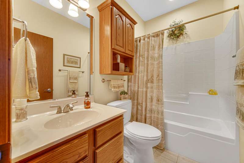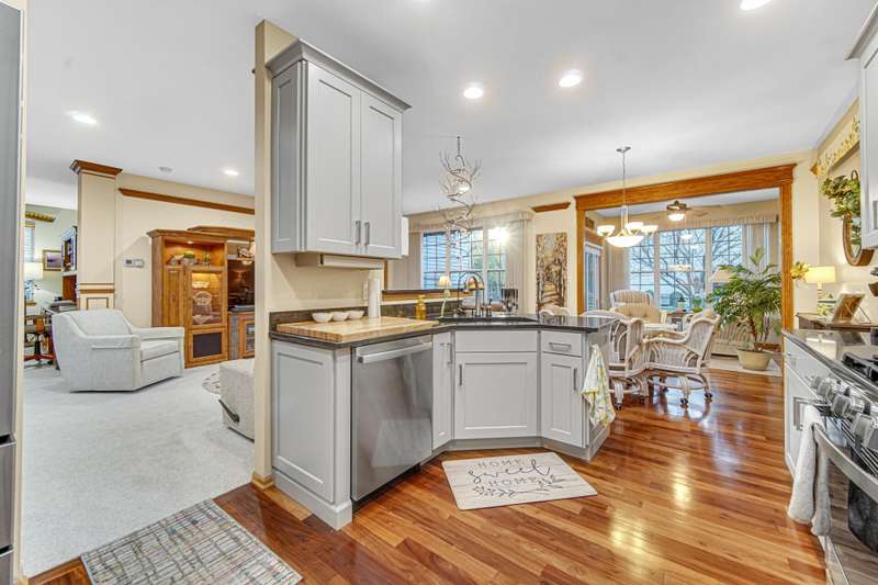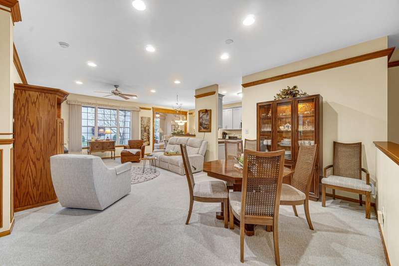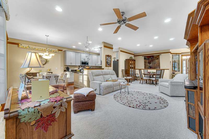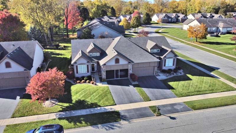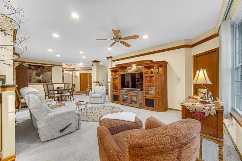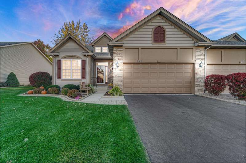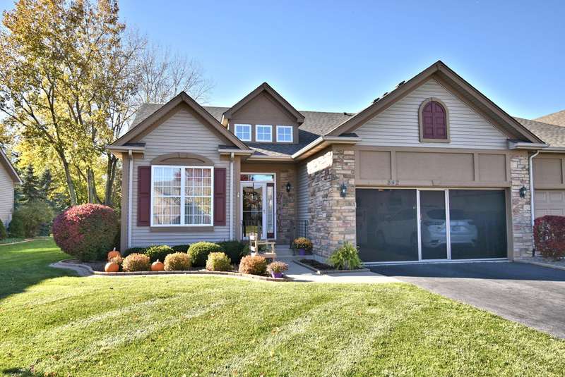 Absolutely beautiful and updated Ranch style 1/2 duplex with 2 bedrooms, 2.5 baths and a full basement. Approx. 3600 sq ft of space on both levels. Entrance foyer has a 14 ft ceiling and Plant shelf. Spacious Living and Dining rooms. Updated, Eat in kitchen with Quartz counters and Stainless Steel appliances. Beautiful Sunroom is located just off the Kitchen. Danta Hardwood flooring in Kitchen and Sunroom. There is also an attractive Den / Office. Updated main bath. Main bedroom has a Tray Ceiling with Oak trim, mood lighting, large walk in closet and its own bathroom. Bedroom 2 is located away from the main bedroom for privacy, and is adjacent to the main bath. Perfect for Guest quarters. Finished, main level Laundry room with cabinets, washer and dryer. Patio in rear has a Sunsetter shade and screen. Basement is spacious, fresh and clean with painted floors and walls. Loads of storage including a Cedar closet. 2 Escape windows. There is also a toilet for your convenience. Battery back up sump pump, just in case. 2 car attached Garage with epoxy floor, heater, wall mounted vacuum for floor and cars, air compressor, refrigerator, storage cabinet, work bench and sink. You will love the custom, Lifestyle retractable garage door screen. Additionally: ** Newer roof with extra insulation added ** Newer carpeting ** Newer, refinished Kitchen cabinets with pull out shelves ** Kitchen appliances are newer ** Paver border around home ** Extended rear patio ** Newer front Storm door ** Installed railing on Front Porch ** Numerous Ceiling fans ** Custom window treatments ** Newer Furnace and Central air ** Windows have UV tinting ** Newer basement Ejector pump ** Natural gas grill with cover and rotisserie ** 2 pets are allowed per HOA. HOA fee includes ground maintenance, snow removal, lawn care, exterior painting, and driveway sealing. ** Community has a waterfall, pond and walking trail. Located close to Shopping, Restaurants and Movie theaters.