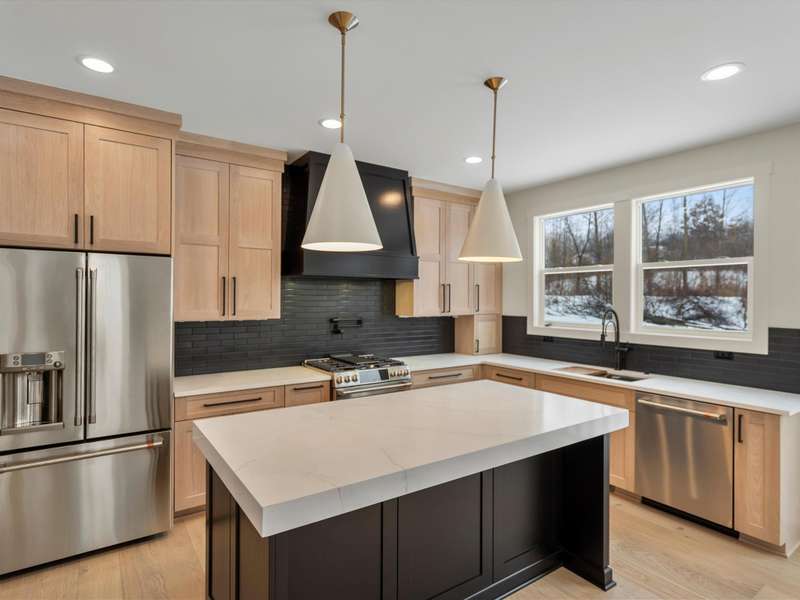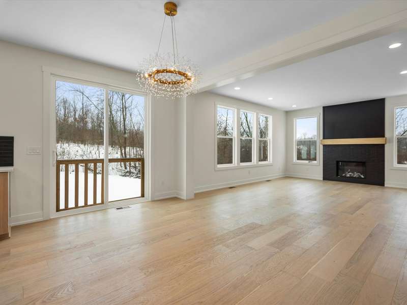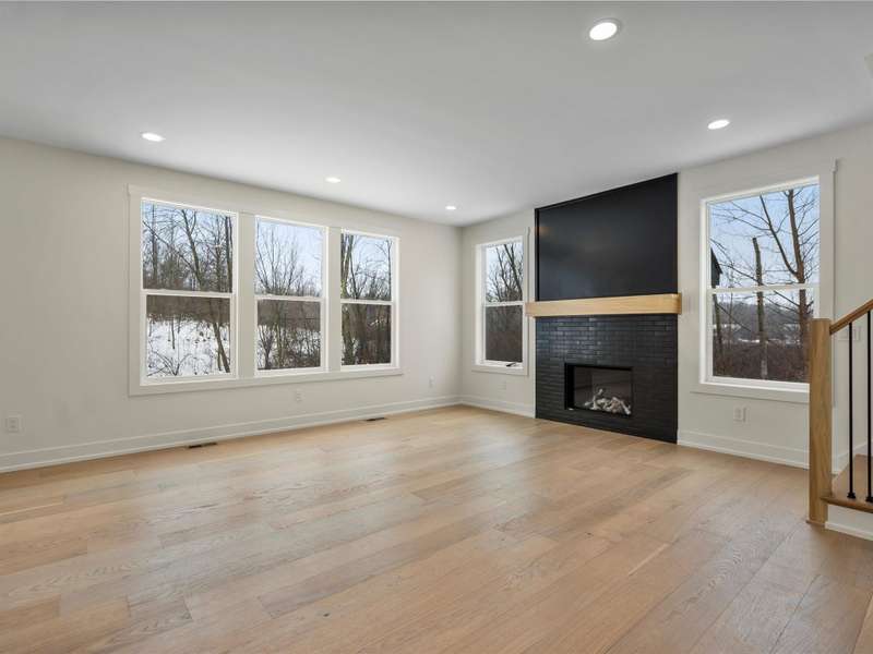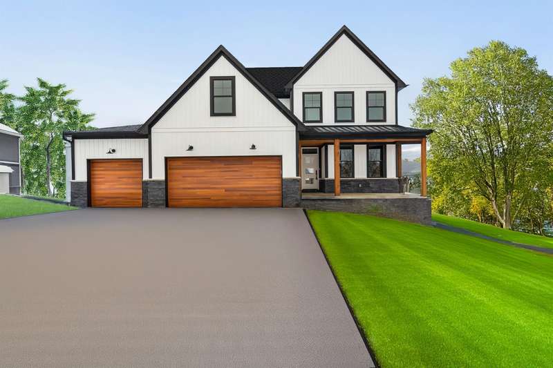 Nestled on a picturesque 2-acre lot, a stunning new construction home blends craftsmanship with modern luxury. Thoughtfully designed with a clean-lined open floor plan, this future residence will offer exceptional living spaces filled with natural light and high-end finishes throughout. A charming covered front porch welcomes you into the elegant formal entry, opening to expansive interiors adorned with rich hardwood floors and custom millwork. The gourmet kitchen will feature a large center island, quartz countertops, designer hood, and a spacious walk-in pantry—perfect for entertaining and everyday living. The expansive living room highlights a beautiful fireplace and an eye-catching staircase, creating a warm and inviting atmosphere. The second level includes a luxurious primary suite with a spa-like bathroom and massive walk-in closet. 3 additional bedrooms, a laundry room, and a built-in desk/workstation area complete the second floor. Bring your ideas to complete the lower level. Attached 3-car attached garage, this exceptional home offers the perfect combination of space, style, and serenity.
