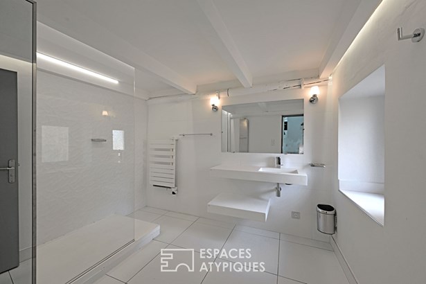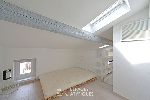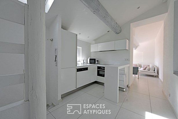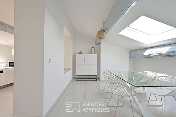 Bright and full of character, it offers a large living room bathed in light, an open-plan fitted kitchen and a dining area, ideal for entertaining, as well as a beautiful 14 sqm terrace with no vis-a-vis, in absolute calm, equipped with a barbecue to fully enjoy the beautiful days.