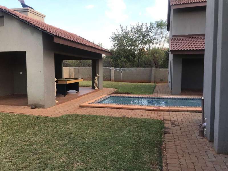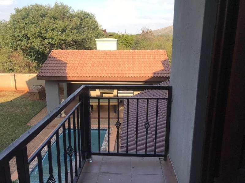5 Bedroom House For Sale ~ Hartbeespoort... This family home offers a cheerful entrance hall.... Which flows effortlessly to the spacious and expansive living areas, that opens into the large green area, where you can sit, and watch the wildlife roaming around in your back yard. The patio area faces a green belt, so you can simply sit there, and take in the magnificent bushveld views and aroma! This home needs to be seen to be appreciated. It offers 5 spacious bedrooms. 1 bedroom with en-suite bathroom is situated downstairs and the other 4 bedroom are upstairs. The main bedroom is en-suite and has a walk in closet. Large entrance hall, opens up to the spacious lounge and family room, adjoining the dining room and a separate kitchen with a scullery, that is well equiped with enough space for all your appliances. A guest bathroom completes this level. Upstairs you will also find a well sized study and a balcony, with a built in braai and breathtaking views! A very cozy yet spacious family room for evening get together and movies is set up on this level. The home is fitted with large wooden doors, on both levels opening up to allow fresh air and natural light to flow through the home. It also offers staff accommodation and a bathroom. Double automated garage with entrance directly in to the house. The entertainment area offers a sparkling pool. Not much more is needed in this home!! Call me so we can set up an appointment to view.......!!