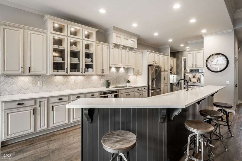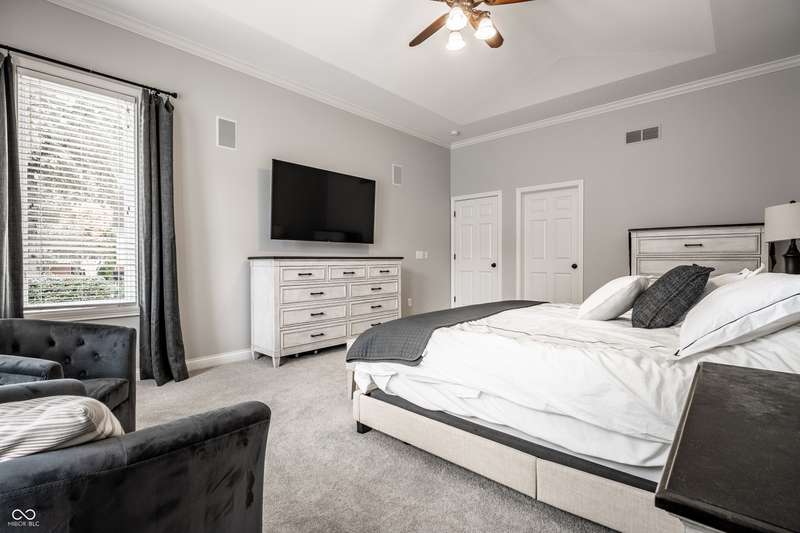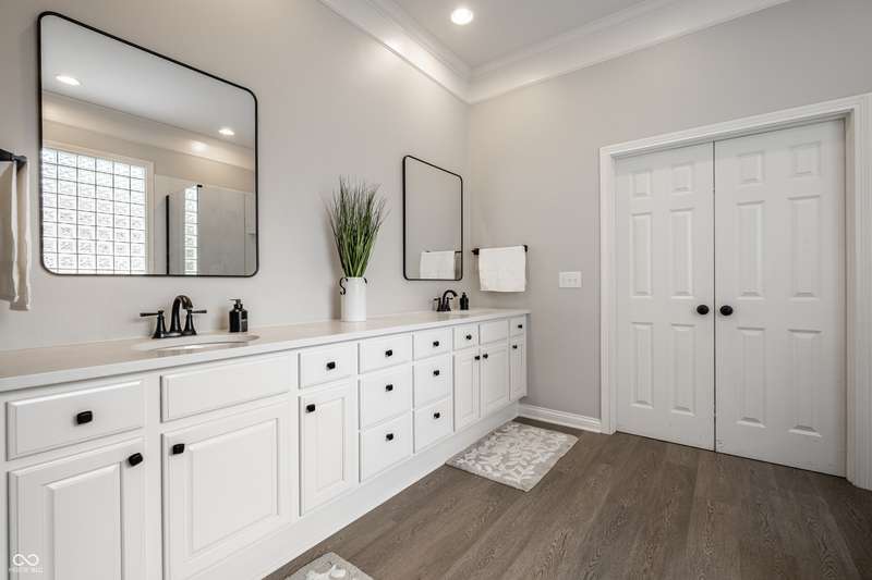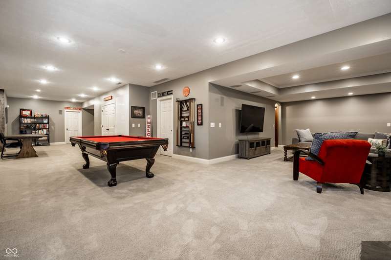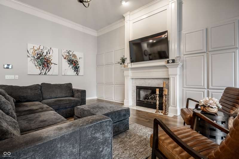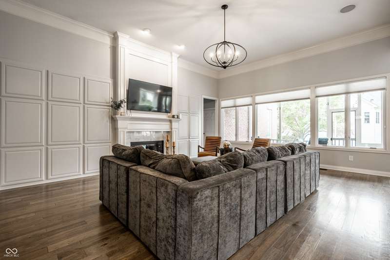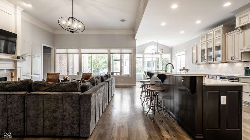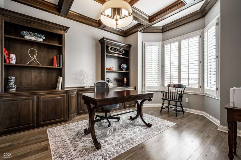 Welcome to this stunning custom-built home nestled in the sought-after Sycamore Springs community. From the moment you step into the expansive two-story foyer, you'll be greeted by beautifully refinished hardwood floors and exquisite custom woodwork that set the tone for the craftsmanship throughout. The main floor features a private home office with coffered ceilings and custom built-ins, newly stained to perfection. At the heart of the home, the chef's kitchen takes center stage with expansive quartz countertops, a functional open-concept layout, and ideal space for entertaining family and friends. The main-floor owner's retreat offers a peaceful escape with a spa-like ensuite and a generous walk-in closet. Upstairs, you'll find three spacious bedrooms, two full baths, and a versatile loft area - perfect for study, relaxation, or play. The large walk-out basement adds incredible living flexibility, featuring a multi-functional rec area, a fifth bedroom with ensuite bath, a media room with wet bar, and plenty of space for entertaining or family fun. Step outside to enjoy the screened-in porch and patio complete with a built-in fire pit - perfect for cozy evenings outdoors. Freshly painted inside and out in a neutral palette, this home is truly move-in ready. Additional highlights include an epoxy-coated garage floor, new sump pump with backup, ejector pit, two new water heaters, and a whole-house generator for peace of mind. Both furnaces and A/C units are serviced semiannually, ensuring year-round comfort.