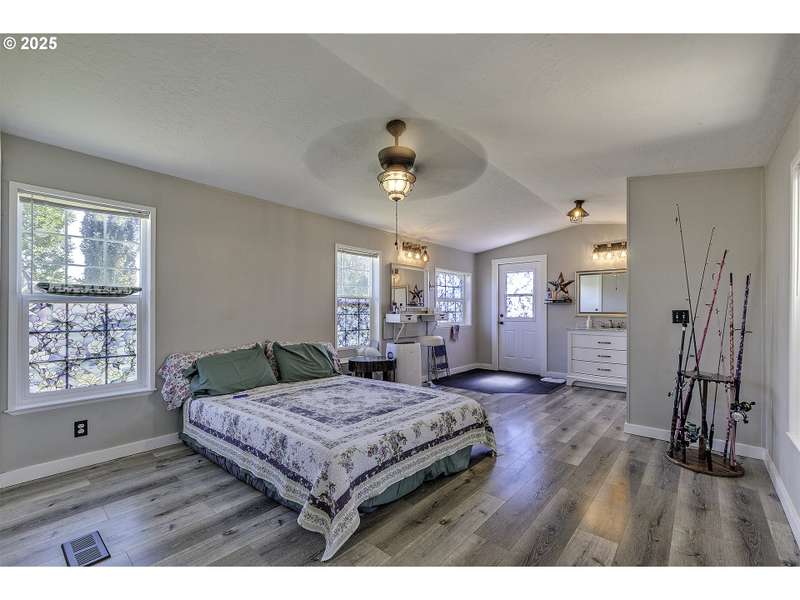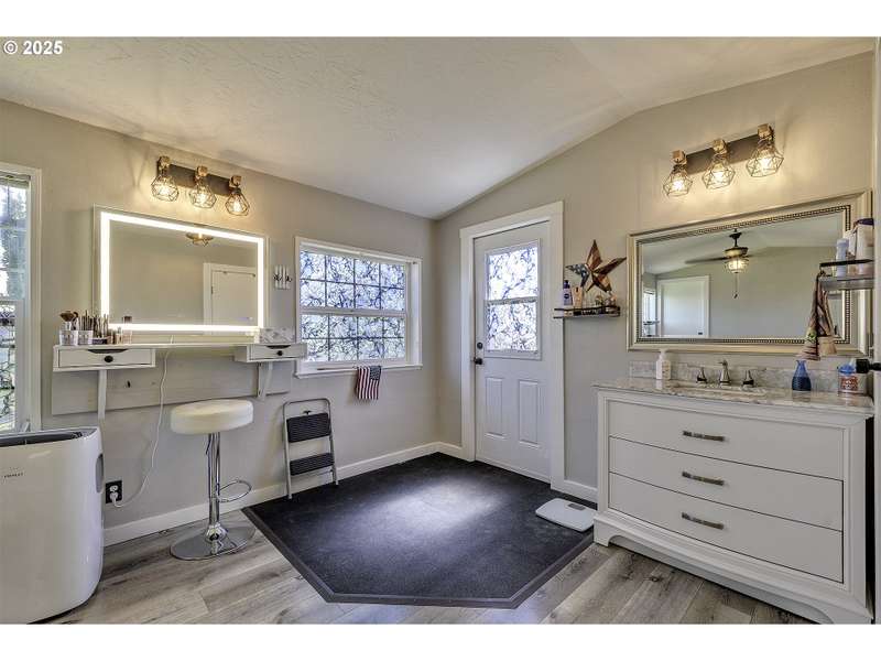 Welcome to Olde Stone Village — McMinnville’s premier 55+ manufactured home community! This beautifully updated single-wide home sits on an oversized lot and offers a bright, vaulted open floorplan with stylish modern touches throughout. Recent upgrades include: Kitchen~Quartz countertops, center island, updated appliances; Primary Bathroom~ Walk-in closet, built-in vanity with smart mirror, walk-in shower, and a new access door leading to the patio; Backyard~ Southern exposure, lush with flowering perennials, complete with a sprinkler system; Interior: Newer laminate flooring and updated lighting throughout, fresh paint; Newly painted exterior and interior for a crisp, clean look; Outdoor Features: Covered side porches, extended carport, and a separate 7x5 tool shed for extra storage. Vibrant, welcoming community offering pool, pickleball/tennis court, gym, recreation center, park and next to Evergreen Museum and Splash Park. Come see it for yourself!
