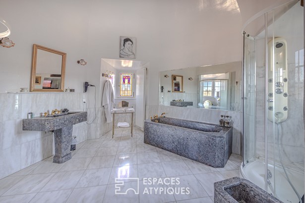 The solid oak parquet flooring, the marble bathrooms and gold-style taps, the sublime 17th century Aubusson tapestries are all prestigious assets serving the incredible services of this marquisate, including a reception room, a ceremonial lounge, a library, a boudoir, a tavern, a chapel, a patrol path defending the 3 towers, also a cinema room that can accommodate 36 people.