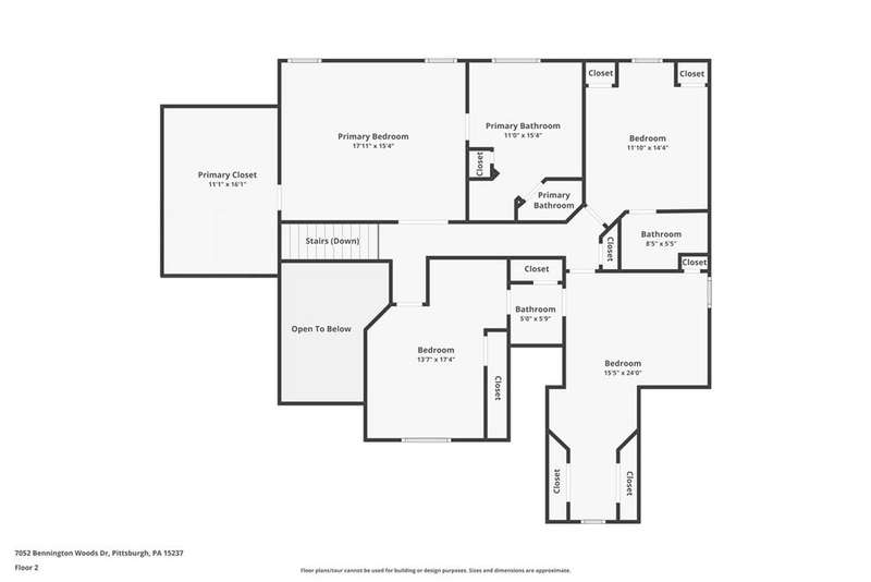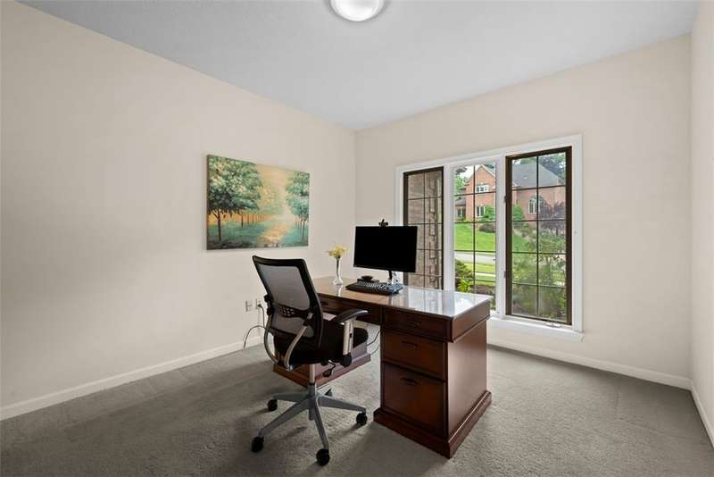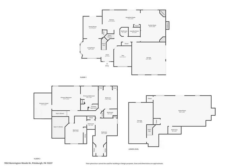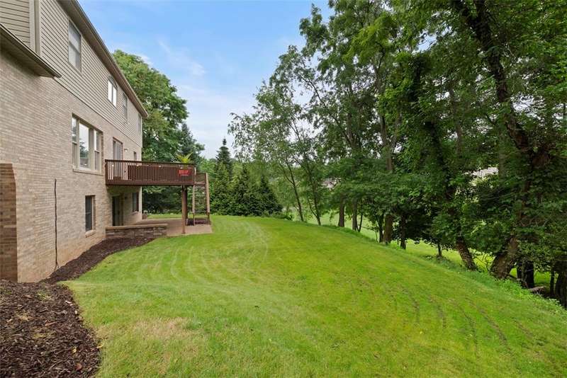 Stunning brick home in Bennington Woods (North Allegheny Schools) with a BRAND NEW ROOF (2025)! Just minutes from the city, shopping, and dining, this residence offers over 3,500 sq ft of elegant living space.A grand 2-story foyer and hardwood floors set the tone. The chef's kitchen with granite counters, island, and gas range opens to a spacious family room with picture windows, fireplace, and access to a huge Trex deck overlooking a private yard. A bright living room with tray ceiling and bay windows, formal dining with wainscoting, and a main-level den add both style and versatility.Upstairs, the luxurious owner's suite boasts a spa-like bath, while the secondary bedrooms include ensuite or Jack-and-Jill baths. The finished walk-out basement offers a game room, patio, and direct yard access. A flat driveway and 3-car garage complete this exceptional property.With its brand-new roof and timeless appeal, this home is truly move-in ready.