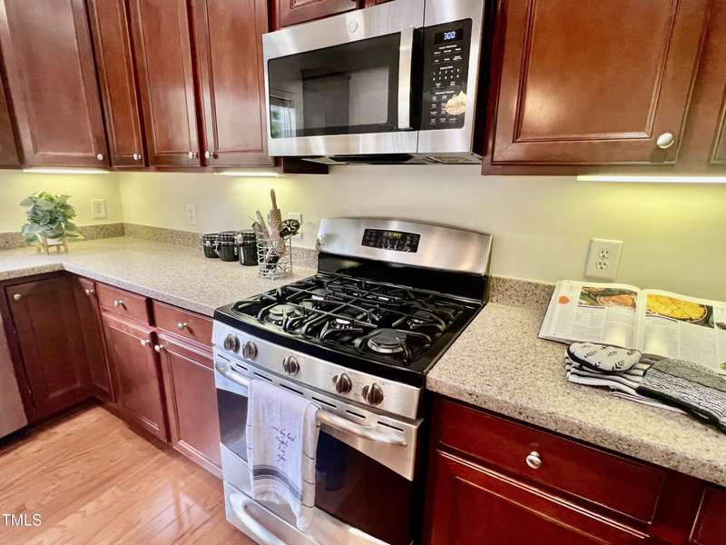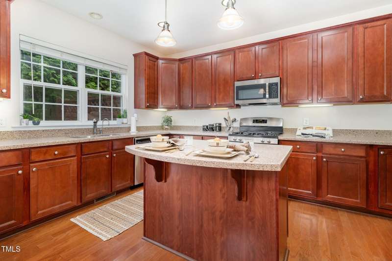Don't Miss this Stylish & Convenient Executive Home. Impeccable End Unit-Three Story Georgian Townhouse in Glenwood/Crabtree Valley Location! Open Floor Plan filled with Abundant Natural Light. Turn Key with Fresh Paint and Professionally Cleaned. Two BRs on Upper Level each with Dedicated Bathrooms & Spacious Walk in Closets. Convenient Laundry Access on Upper Level as well. Newer W/D Conveys ! Flex Room/Office or 3rd BR on Daylight Lower Level with Full Bath & Private Entrance. Main Floor Living Offers 9 FT Ceilings, Hardwood Flooring, Gas Fireplace, Dining & Large Kitchen to Please any Chef ! Granite Counter tops, Gas Range, Abundant Cabinet Space and Center Island ! SS Refrigerator Conveys. PLUS Private Balcony Deck off Main Level. Simple Commute to Downtown Raleigh, Rex/UNC Hospital, Crabtree Valley Mall, Restaurants, Lenovo Center & RDU Airport. Roof 2024. Oversized 2 Car Garage w/ Side Storage, a Nook & Closet.