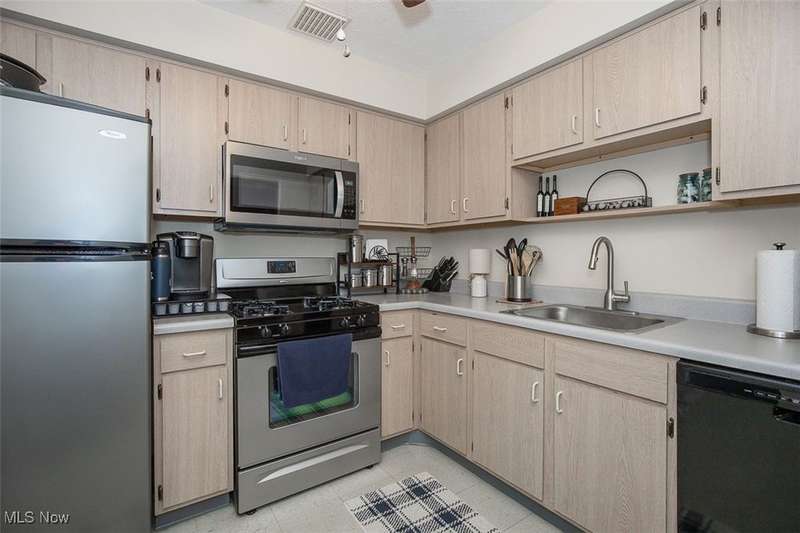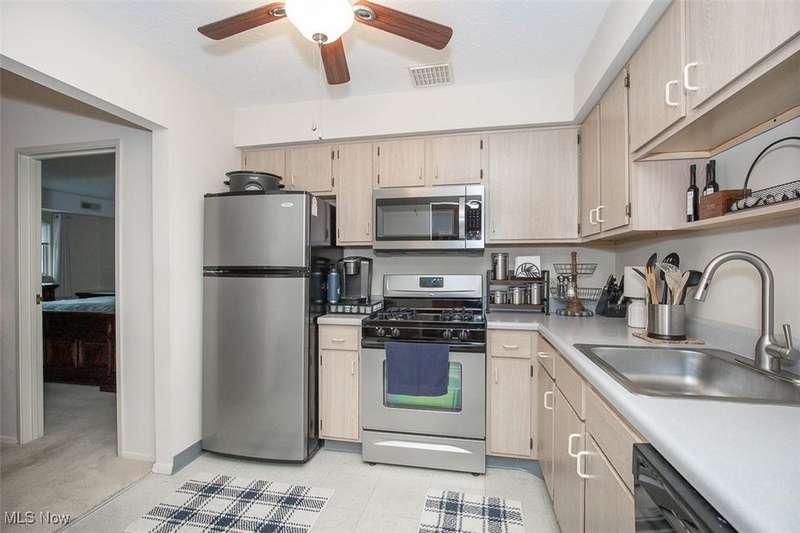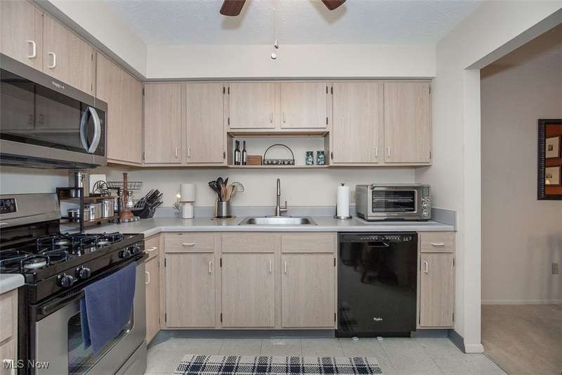 Someone out there has been waiting for this conveniently located and well-cared for 2 bed/2 bath corner ranch condo opportunity to hit the market!! Private entrance with patio located off the shared parking lot, with garage spaces available at an additional fee of $35/month depending on availability. All rooms are a generous size, and there is a dedicated dining room and laundry room. Both full baths have been renovated and the large master bedroom with two closets is privately located on the unattached corner of the unit. Plenty of cabinet space in the kitchen and room to create an eat-in area or add more counter or cabinet space. All kitchen appliances (Whirlpool suite) stay. Owner has maintained the furnace semi-annually over the years. Electric and gas are paid by condo owner, maintenance fee includes trash removal, landscaping/snow removal, water, and sewer. Property is located 1/4 mile from I-480; close access to Lorain Rd, Bagley Rd, and the Ohio Turnpike.