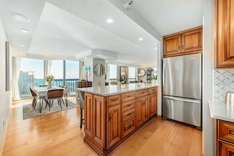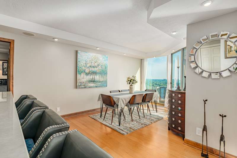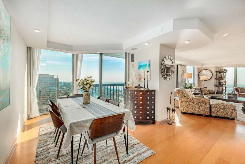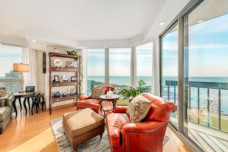 Experience the very finest in condo living in this incredible penthouse unit in Landmark on the Lake! You have to see the view to believe it! Sunlight dances and shimmers off the blue waters of Lake Michigan. The view is mesmerizing. Combine this with world class amenities only found at The Landmark: coffee bar, indoor pool and hot tub, fitness center, dog park, community room, car wash station, and an incredible sundeck. You will enjoy the eastside Milwaukee vibe! The interior is elegant. Soft hues blend with hardwood floors, updated light fixtures, and refreshed kitchen and bathrooms. The dining area can go formal to casual. Walls of windows present a variety of vistas. There are three balconies to enjoy the outdoors. Luxurious primary suite with organized walk-in closet. Bedroom #2 is spacious. This unit includes in-unit laundry, a large storage area, plus there are 4 storage lockers. Two indoor parking spaces are included. Your every desire fulfilled here at Landmark on the Lake!