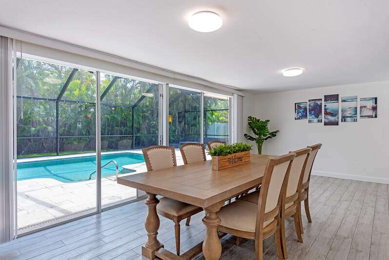 Discover this beautifully updated 3-bedroom, 2-bathroom home, ideally situated in the highly sought-after community of Palm River. Nestled on a spacious quarter-acre lot adorned with palm trees, this property features a brand-new roof, new air conditioning, a pristine pool with new equipment, and fresh landscaping-making it truly move-in ready.Step inside to find a bright, modern interior with an open floor plan and an additional room perfect for a den or study. The spacious bedrooms include a main bathroom with a double vanity, and the large galley kitchen boasts stainless steel appliances.Enjoy the atrium-covered pool area, perfect for outdoor living year-round. This home is just minutes from Naples' stunning beaches and upscale outdoor shopping malls, offering an exceptional lifestyle for you and your family.