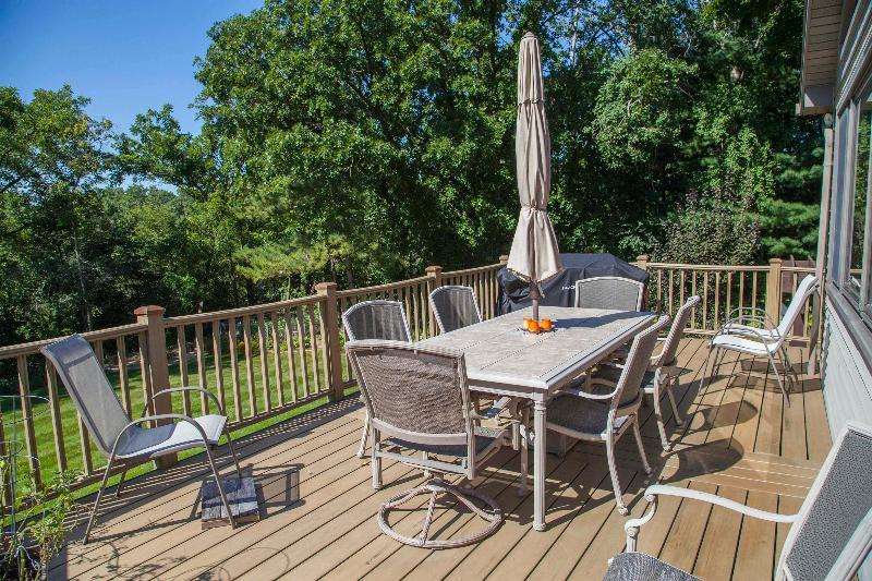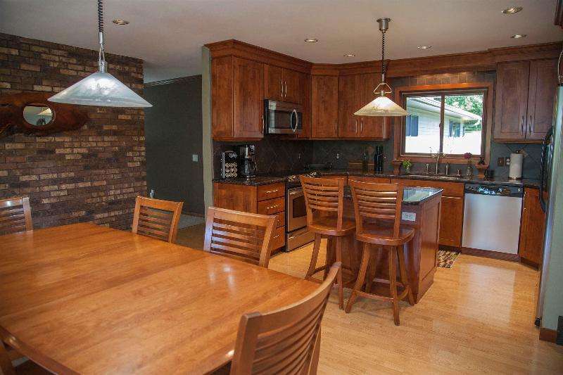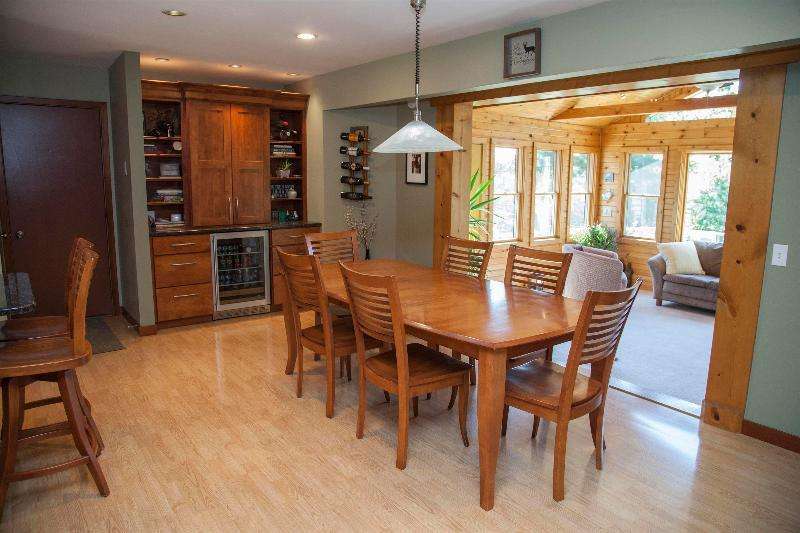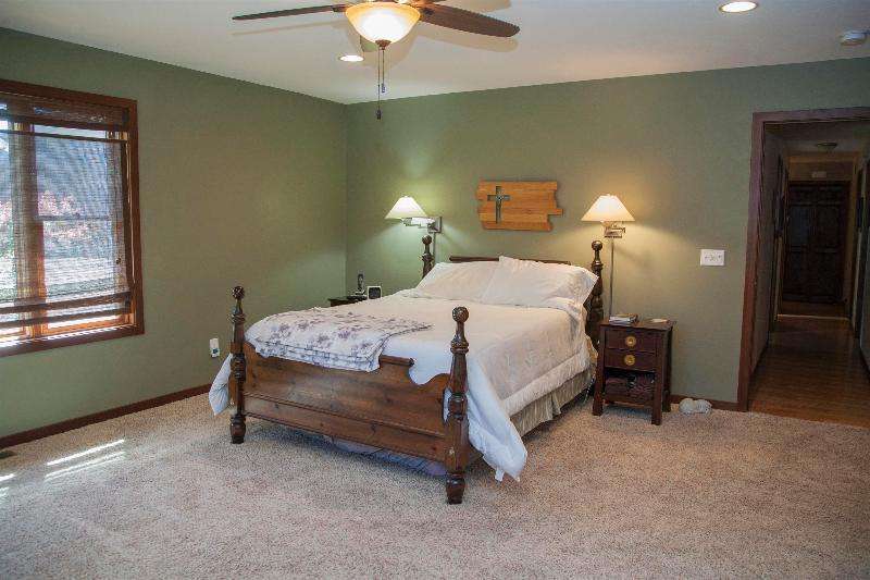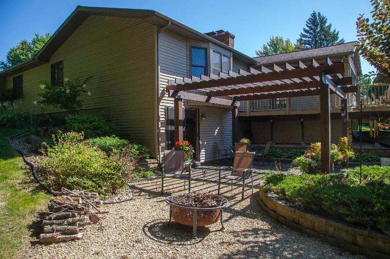 Welcome to convenience and tranquility! Built in 1980 by a builder for himself, this home has been lovingly cared for by its current owners for 28+ years. In 2012, a thoughtful addition created a spacious primary suite w/ walk-in closet, dual vanities, and soaking tub--along with a 3rd garage stall. A sunroom and updated kitchen were added earlier, making them the heart of the home. With 5 bdrms, 2 fireplaces, a large living room, and a rec room on nearly 3 acres, this property offers both comfort and room to grow. Outdoor living includes a pergola-covered seating area, low-maintenance deck, and welcoming front porch. Gardeners will love the raised & fenced beds, while community shines with its center island where neighbors gather for fires and connection.