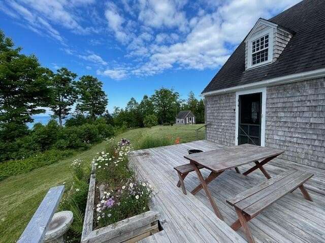 Brand new roofs, Summer 2025! Perched above Passamaquoddy Bay, The Kingsbury House has been a beloved summer residence for over a hundred years. This turnkey, three-bedroom home has several unique features including a large brick and stone fireplace with a bread oven. Family names and loving words are written into the bricks. A library with a woodstove, a full kitchen and full bath round out the main floor. A large deck spans the side of the house offering a stunning view of glorious sunrises as well as a welcoming outdoor space for entertaining. Take in vistas of Passamaquoddy Bay, Navy Island, The Algonquin Hotel in St. Andrews-by-the-Sea, Deer Island, and mainland New Brunswick, Canada. This delightful property includes a separate artist or wellness studio for creativity and a lovely breezeway connects a woodworking shop (23' x 19') to the house. Plus there are two detached garages, a 3-car garage (32'x 16') and a field garage (20' x 10') with an additional shed for lawn equipment. No matter how you choose to spend your leisure time, there is a place for you here. The yard celebrates a variety of pink peonies and wild roses that adorn the grounds, and there is a path to a rock beach that brings the sea into reach. Panning out, the property is tucked in by a cedar post fence. The property is situated between the Maine Coast Heritage Trust's Loring Cove Preserve (13 acres) and Loringwood, a 70+ acre family-owned property. The Kingsbury House is located in Perry on the 45th Parallel halfway between the North Pole and the Equator and between the border town of Calais and island arts community of Eastport. There are lakes, streams, and the Atlantic Ocean with hiking, biking and kayaking opportunities with fresh and saltwater public access all within a 20-minute drive. Neither words nor photos can express the totality of this beautiful property. It awaits new stewards to care for it as lovingly as those before them. Broker owned.