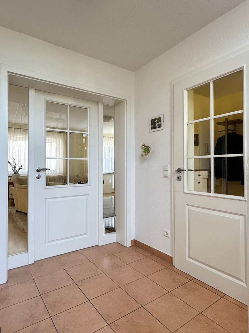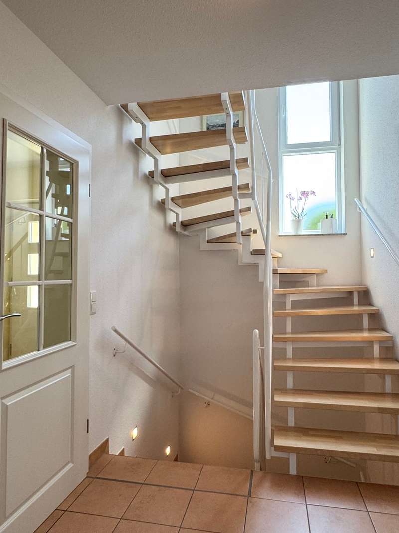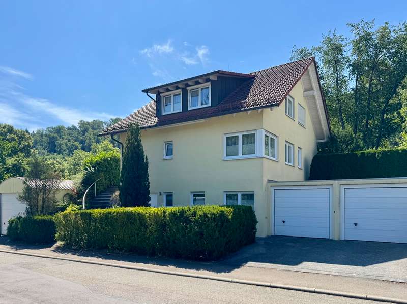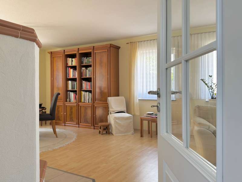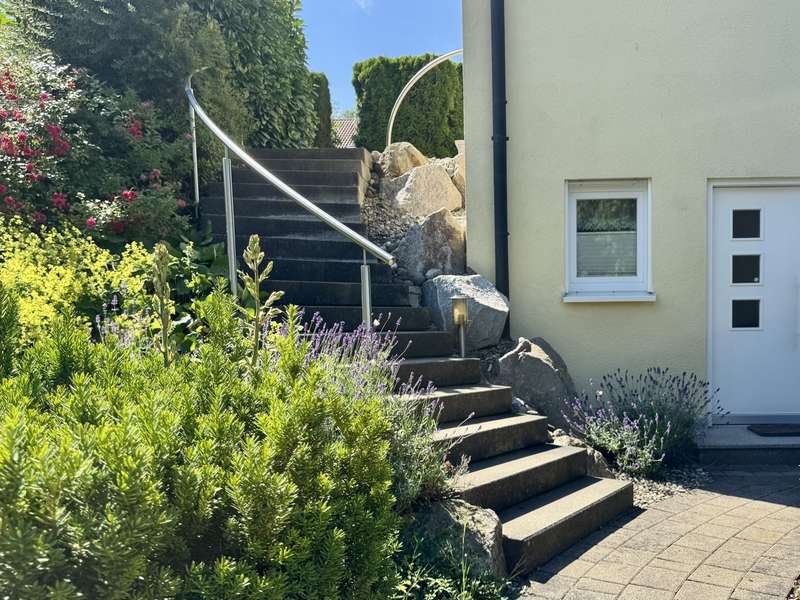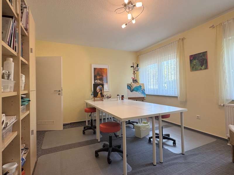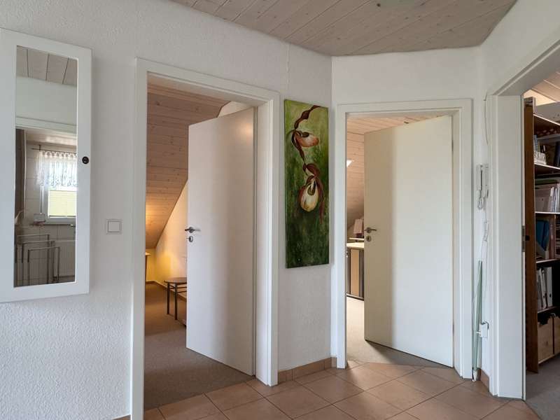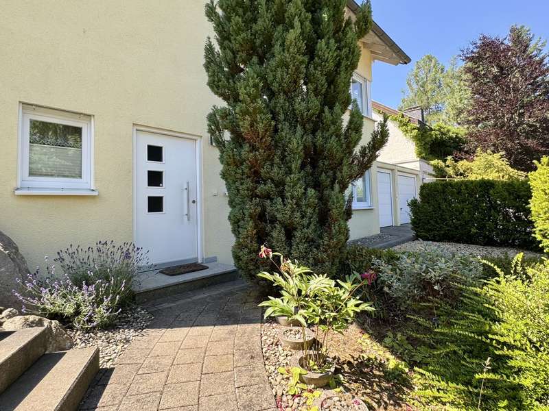 Elegant detached house with practice, office or granny annexe in a sought-after, natural location This attractive detached house with a practice/office or granny annexe was built in 2005, occupied in 2006 and is situated on a generous plot of approx. 724 m². With a living area of approx. 179 m², it offers sufficient space for families or professionals with increased space requirements. The room layout comprises a total of six rooms, 2 separate WCs, a bathroom and 2 entrances. One of the entrances is accessible via several steps. The house is in mint condition as it has been constantly maintained and modernized in recent years. A carport with gate was approved and erected in 2010, providing additional protection and comfort. There is ample space for vehicles in an area measuring approx. 5.40 m x 4.20 m. Particularly noteworthy is the replacement of the heat exchanger in the heating system in 2021, which further increased the efficiency of the central heating. In addition, the house is equipped with a variety of high-quality features. The double garage with 2 doors, equipped with an assembly pit and an epoxy resin floor, is worth mentioning, as are the two additional outdoor parking spaces. The cellar is made entirely of concrete and offers a power connection as well as additional storage space and room for household appliances and a washing machine. The internal staircase, which leads from the basement to the first floor, was cast in concrete and integrated on site. The first floor and attic are connected by an elegant open staircase with real wood steps. The garden is equipped with a 4 m x 4 m approved garden shed and a trellis with vines that serves as a privacy screen from the neighbors. Two outside water connections and a terrace with electricity provide additional comfort in the outside area. The roof is drained via high-quality copper pipes, and special measures such as a leaf sieve on the downpipe and snow guards on the roof add to the quality of the construction. The roof peak is accessed via a slide-in staircase. The house also has an approved practice area with a ground-level entrance, which is currently used as a hobby and work area. The soundproof walls and doors provide a clear separation from the private area of the house. A gas condensing boiler in combination with a wood-burning fireplace in the living room provides warmth and comfort. All windows are double-glazed, lockable and fitted with shutters and pleated blinds. The property, which is as good as new, offers versatile usage options for both families and professionals looking for a combination of living and working environment. With its upscale furnishings and high-quality building materials, this house represents an attractive opportunity on the real estate market. A viewing is well worthwhile to experience the full potential of this property and to see the high-quality features in person. Please note that your general financing confirmation must be presented for a viewing appointment. Please also leave us your complete data set.