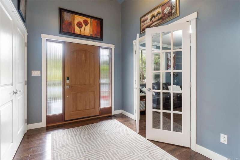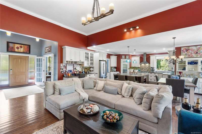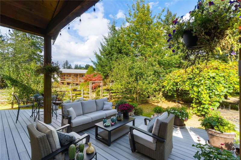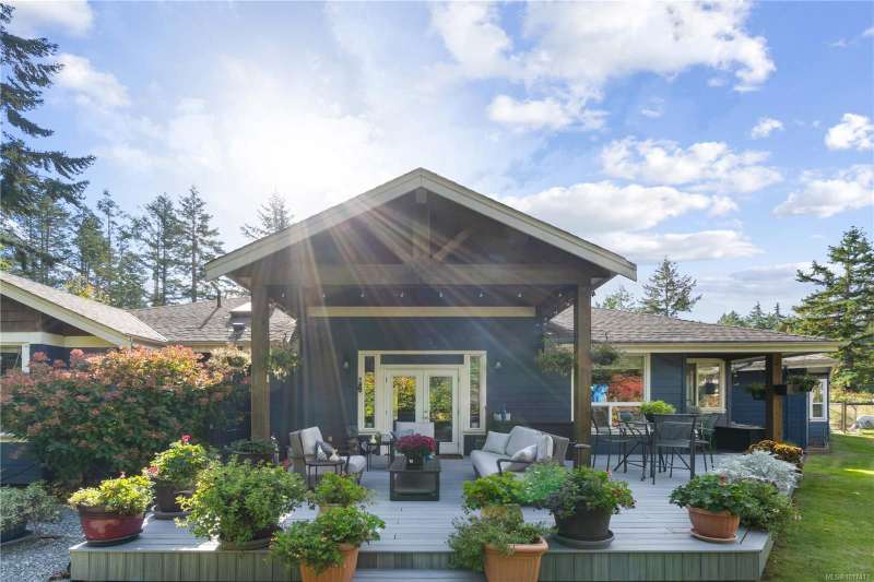 Welcome to this stunning custom-built, one-owner rancher in desirable Cedar by the Sea. Spanning 2,863 sq.ft. on a beautifully landscaped half-acre lot, this home blends comfort, function, and thoughtful design. The massive great room with vaulted ceilings flows seamlessly into the spacious kitchen featuring an oversized island, perfect for entertaining or family gatherings. Off the kitchen is a flexible family room or home office, plus an additional bedroom and 3-piece bath, ideal for guests or a potential in-law suite. Two more bedrooms share a Jack & Jill bath, while the primary suite offers a walk-in closet and luxurious ensuite. A triple-car garage with workshop space provides room for projects and storage. Outside, enjoy a large deck, garden area, fruit trees, and ample yard space. With AC, two hot water tanks, and a good-sized crawlspace, this home combines privacy, quality, and coastal living just minutes from the ocean.