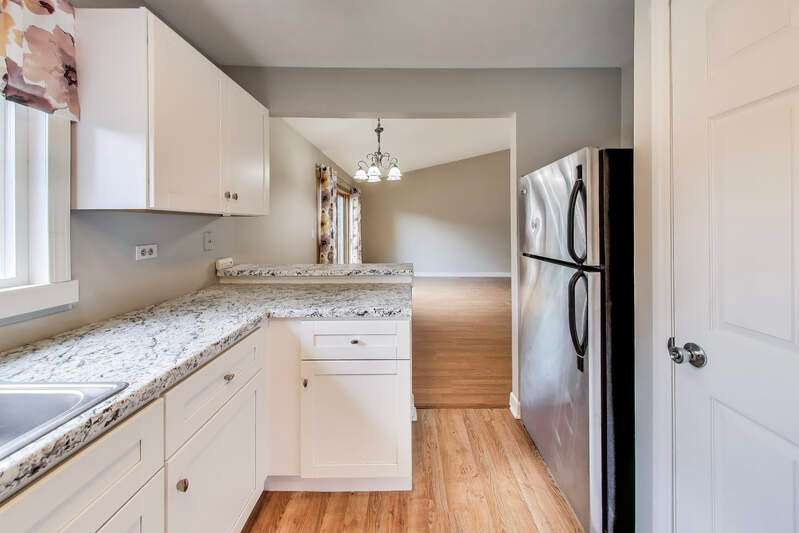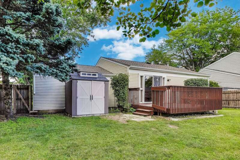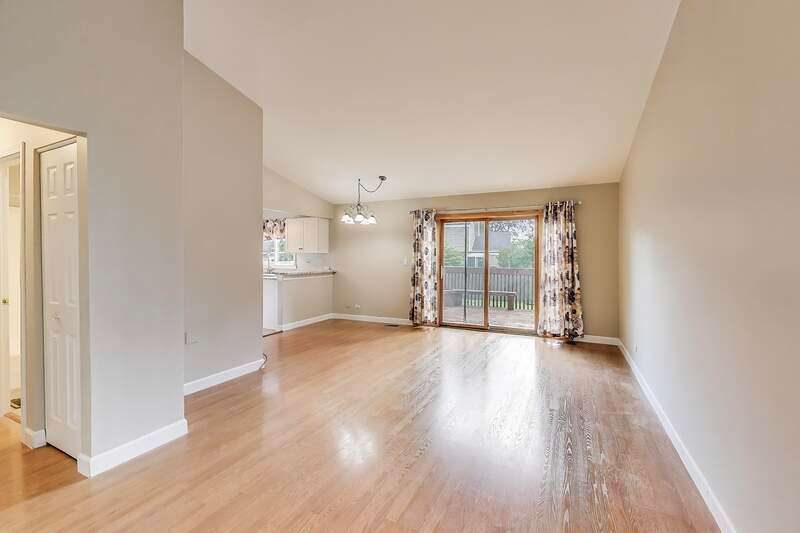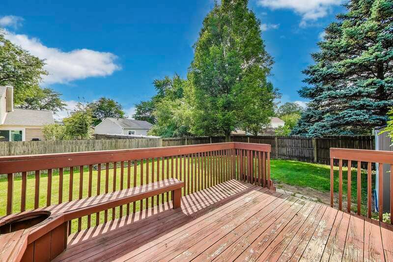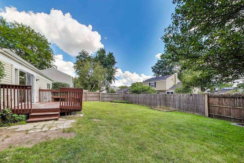 **FRESHLY PAINTED** Don't miss the opportunity to own this rarely available ranch with a full finished basement and a 2 car garage! The kitchen, dining area and living room with vaulted ceiling are all open to each other. The updated kitchen features beautiful white shaker style cabinets, stainless steel appliances, breakfast bar and plenty of storage space. Full finished basement provides for additional living space with a recreation room and a possible third bedroom. Enjoy the large fenced-in yard with a deck that is perfect for relaxing or spending time with family and friends. Updates include new gutters, soffits, and fascia (October 2024), whole house humidifier (2024), new dryer (2024), sliding door (2020), oversized kitchen window (2020), hot water heater (2020), furnace and A/C (2012). Great location that is walking distance to Butterfield Park that features a playground, basketball court, baseball field and a walking path. Easy access to all amenities including shopping and dining. Nothing to do but move in!