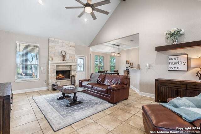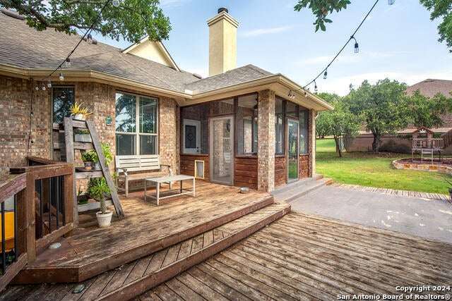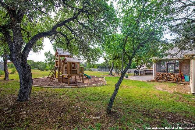 Enjoy easy living in this beautifully updated Hill Country home in the highly sought-after Pinnacle Community. This 1.5-story home provides a remarkable floor plan with open-concept living, high ceilings, and abundant natural light. The spacious living area with its stunning wood-burning fireplace makes it the perfect place for congregating or entertaining. The spacious kitchen flows beautifully into the breakfast area, offering views of the expansive backyard. The primary bedroom includes a walk-in closet, ensuite, and dual vanities, ensures privacy with separation from secondary bedrooms. Outside, enjoy the privacy of the screened porch, or savor a cocktail on your picturesque deck. The mature trees and sweeping backyard create your private sanctuary allowing you room to breathe or play. Here, you will be enjoying the ease of quick access to picturesque Gruene, Schlitterbahn, and the popular San Marcos Outlets. Situated near major roadways, the location is a commuter's dream offering an easy commute to both San Antonio and Austin.
