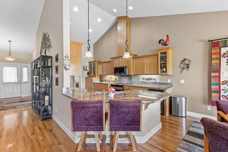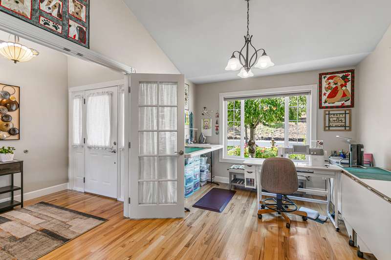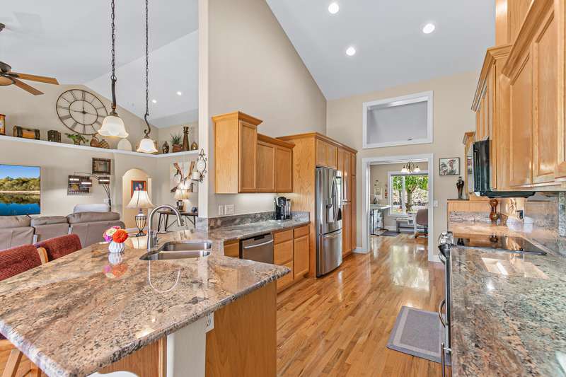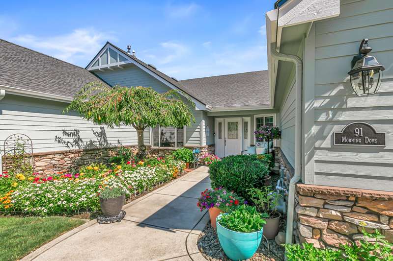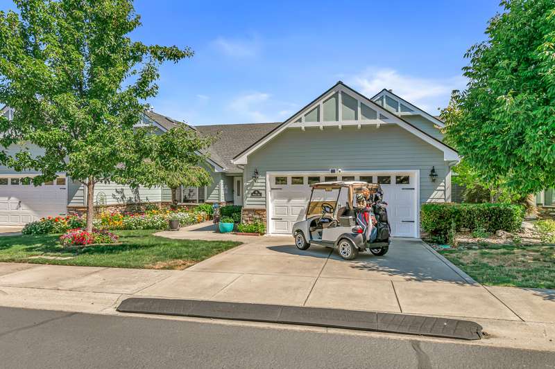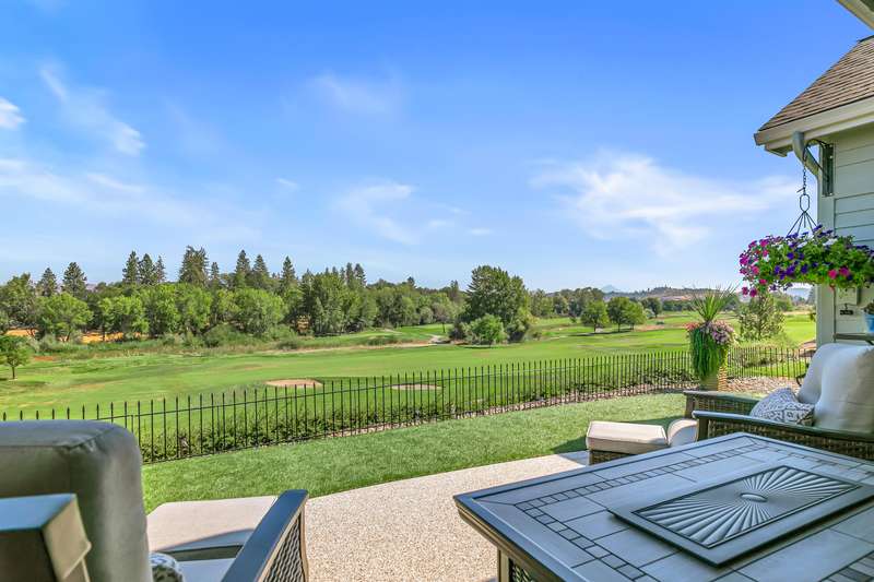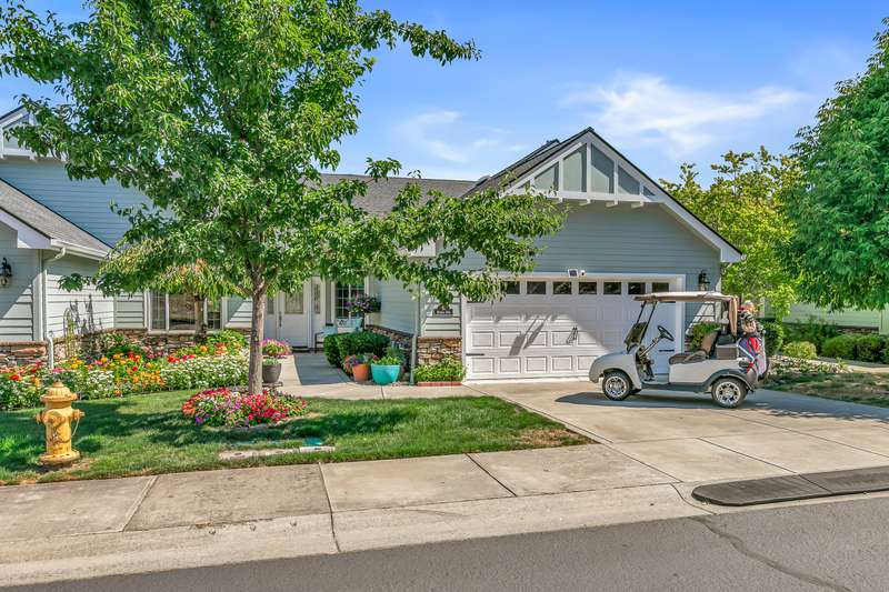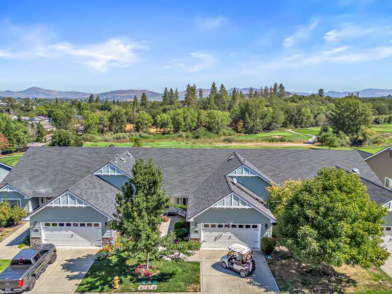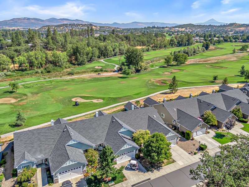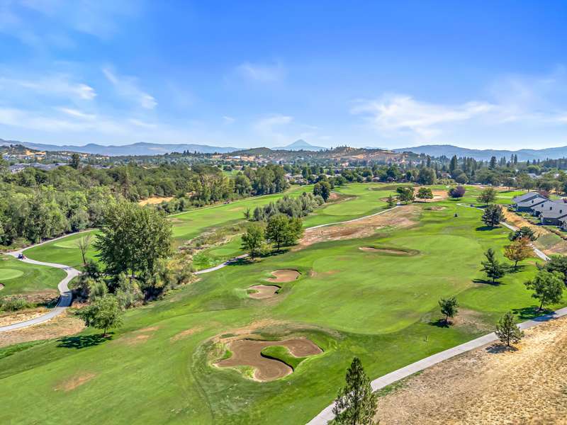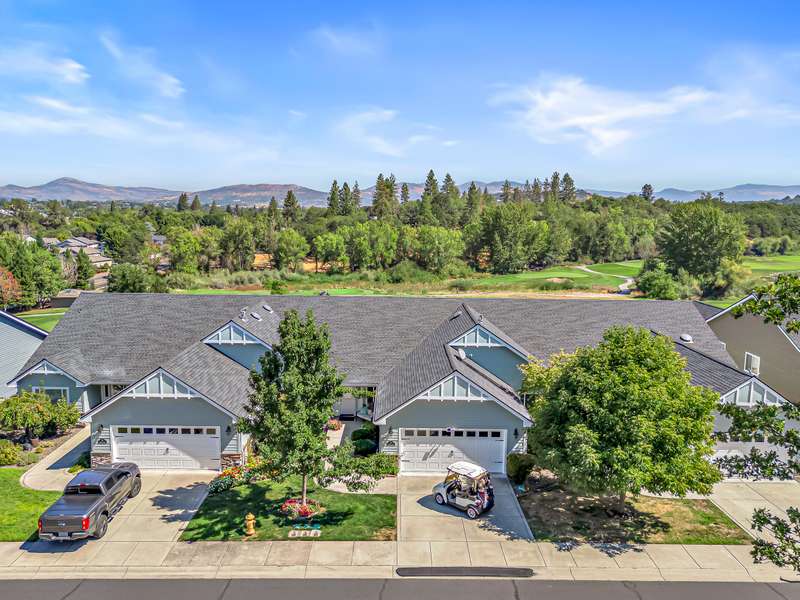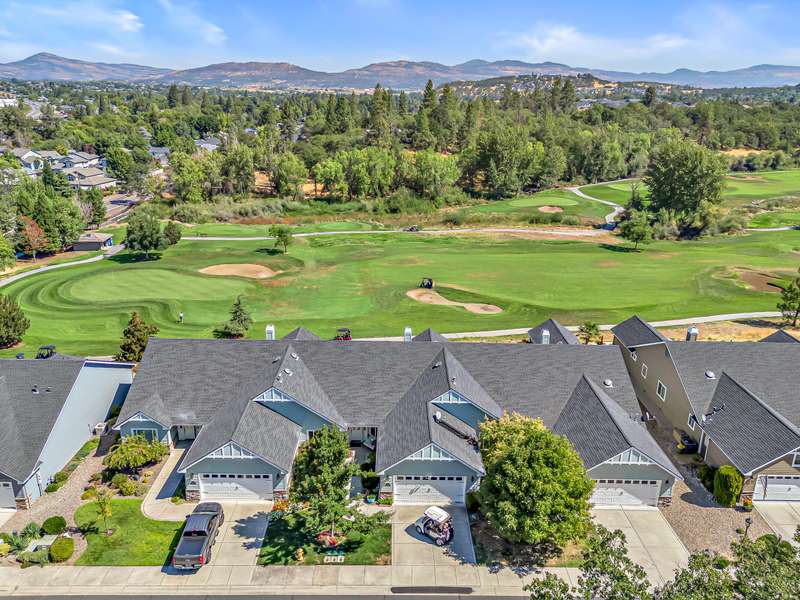 Exquisite 2-bed, 2-bath, 1,964 sq ft home in the gated Poppy Village HOA, nestled on the 14th green of Eagle Point Golf Course with stunning Mt. McLoughlin views! This 2003-built gem features vaulted ceilings, hardwood floors, and an open-concept living area bathed in natural light. The gourmet kitchen shines with new granite countertops, stainless steel appliances, and a spacious peninsula. Relax by the new gas fireplace or retreat to the refreshed primary bedroom with new carpet, paint, and a walk-in closet with spa-like ensuite. Enjoy elevated golf course views from the landscaped (artificial turf) backyard, the living areas or primary suite. Upgrades include a 2021 HVAC system, and a 2-car garage. Near top schools, parks, and shopping with easy downtown access. Move-in ready for $500,000—your dream home awaits in this prestigious gated community!