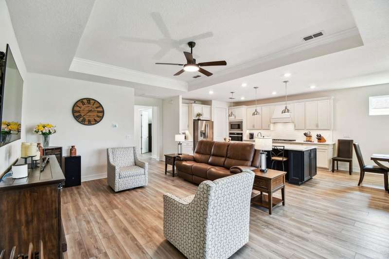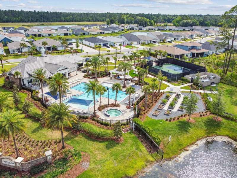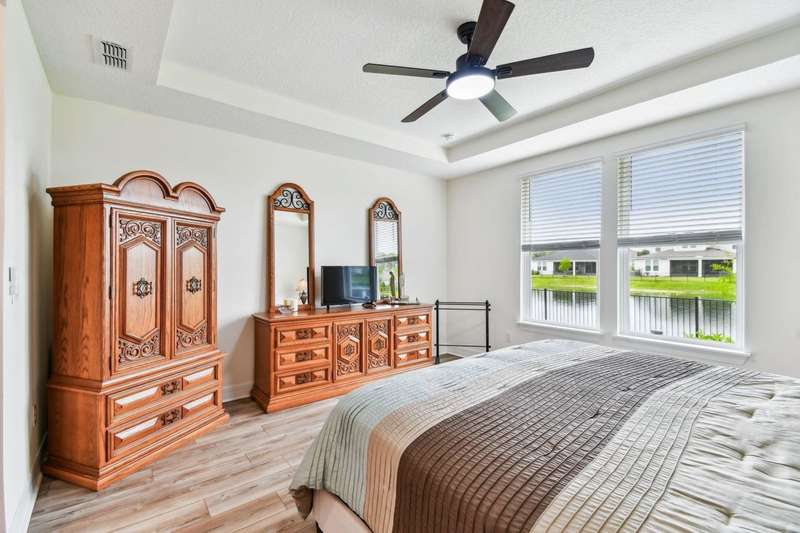 Welcome Snowbirds!! Lakeside Living in Exclusive Summer Bay at Grand Oaks ??? 55+ Resort-Style Community. This beautifully maintained 3 bedroom, 2.5 bath residence offers serene lakefront views and a lifestyle of comfort and convenience. Step inside to discover luxury vinyl plank flooring throughout???both stylish and low-maintenance. The open-concept kitchen boasts a huge island, gas range, stainless steel appliances, and tons of storage for all your culinary needs. Enjoy seamless indoor-outdoor living with a triple sliding glass door that opens to a spacious lanai and paved patio, perfect for relaxing or birdwatching in this tranquil setting. You will also love the views from your large primary suite, offering a tray ceiling, garden tub, frameless shower and two spacious closets. This home has two other bedrooms, one with an attached bath, great for quests and one with a Murphy bed, perfect for an office space but convenient for when the grandkids come to town! Other things to mention: tons of storage, security system, water softener, tankless water heater and epoxy garage floor. Located just minutes from World Golf Village, historic downtown St. Augustine, and the sun-drenched beaches of Florida???s coast, this home offers an unbeatable location. Summer Bay is a 55+ gated community with resort-style amenities including a pool, spa, pickleball courts, doggie park and a community garden???everything you need to live your best life. This home truly has it all???schedule your private tour today!