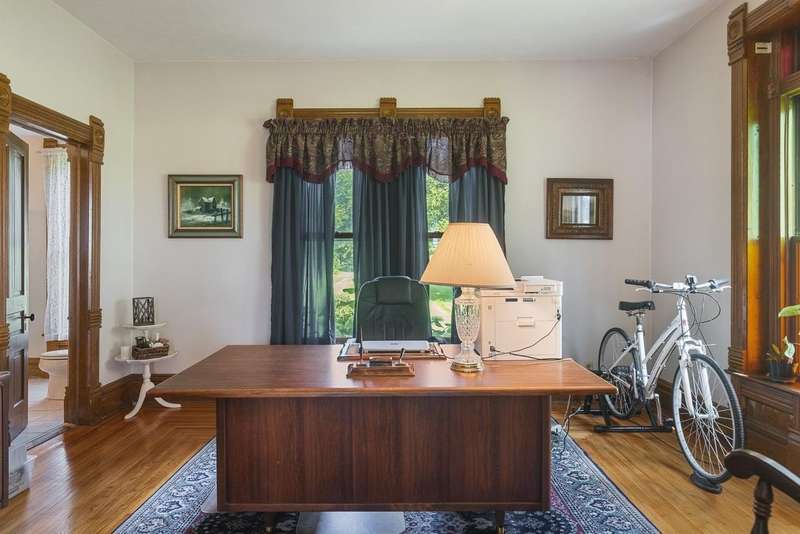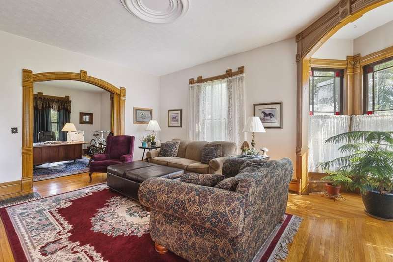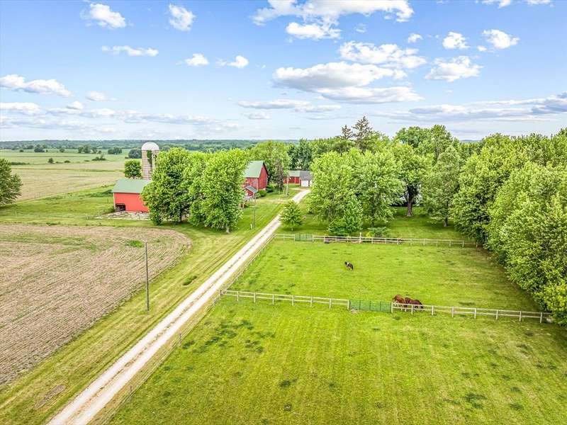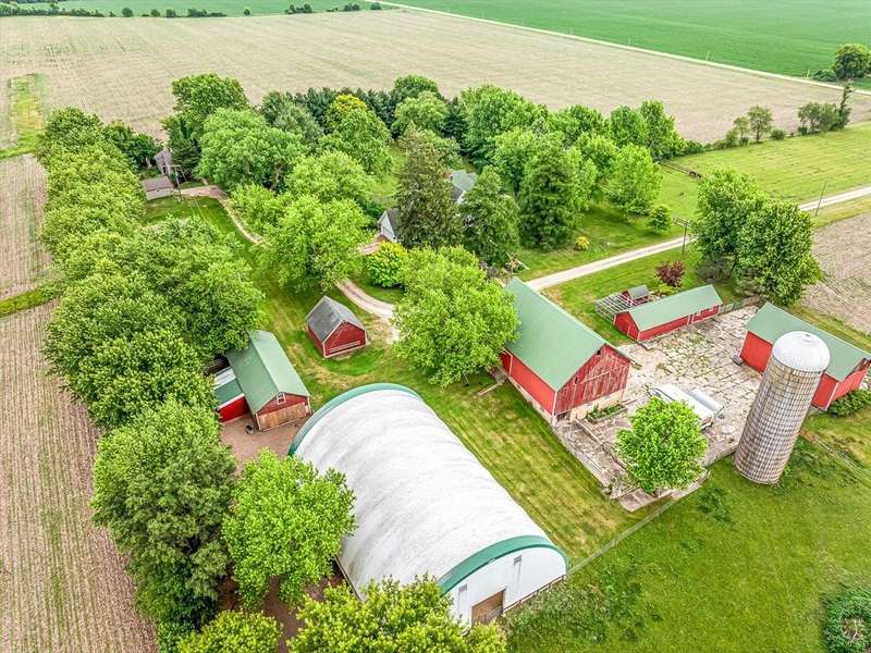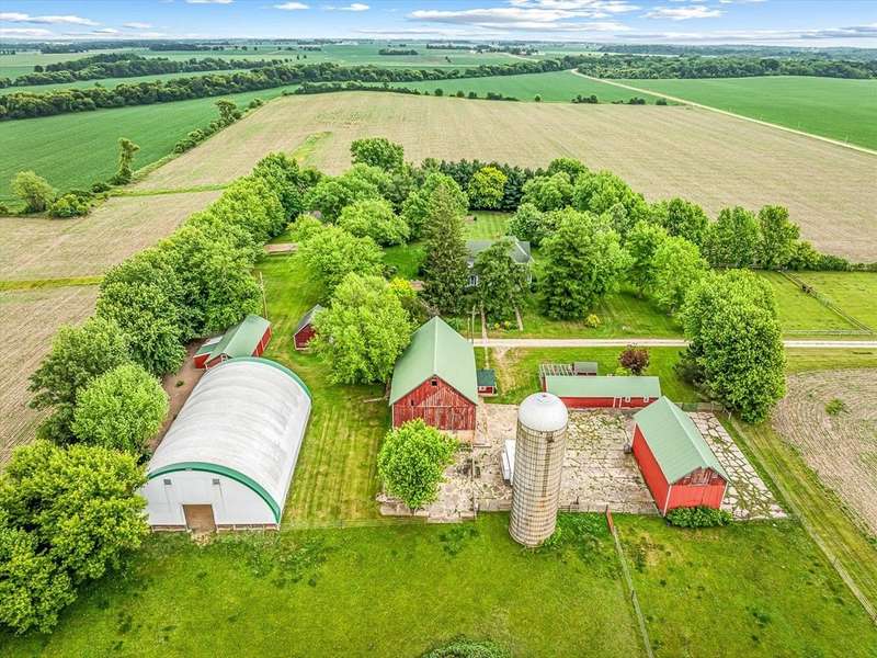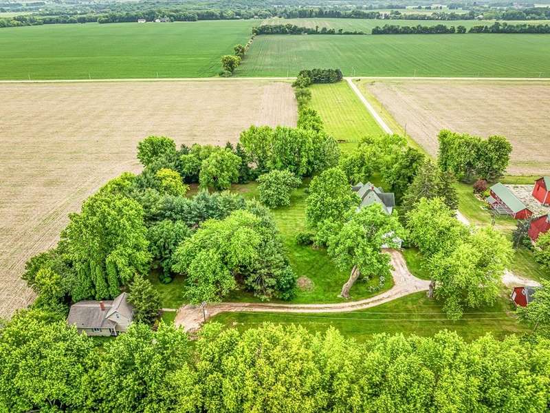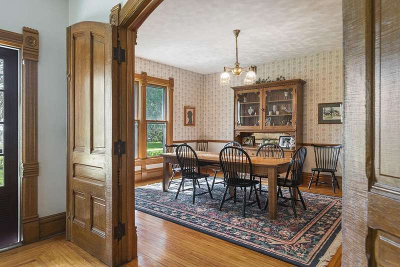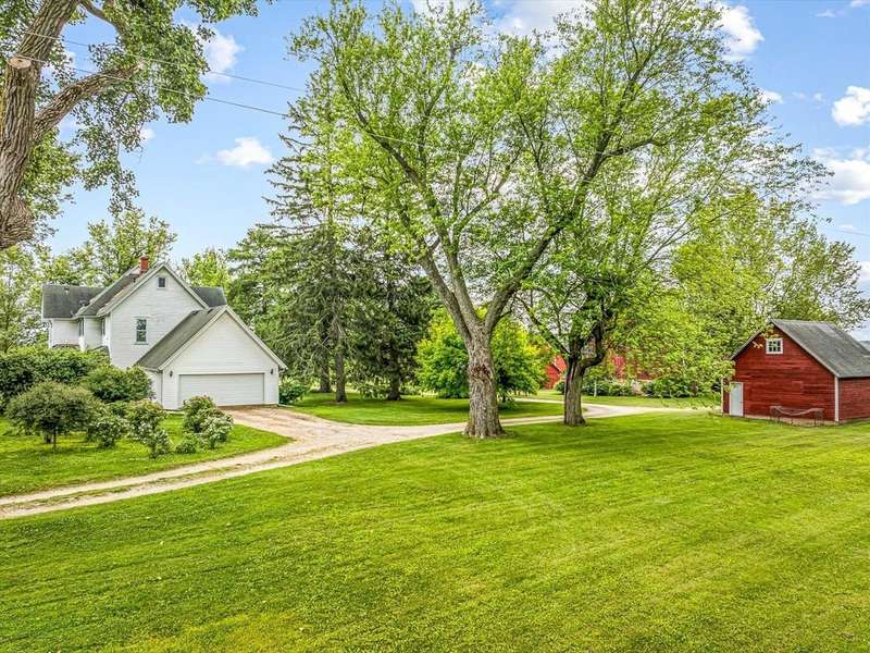 The private oasis you have been dreaming of! Surrounded by open fields, this 4,100 sf Victorian sits on 7.54 acres of total peace, quiet, & privacy! Zoned AG, all animals welcome! This sprawling property includes 6 outbuildings, 3 garages, & 2 homes! The main house is a Grand Victorian from 1889 that has been beautifully maintained! Inside you will find original hardwood flooring, arched doorways, pocket doors, high ceilings -12 ft main & 10 ft up, tall windows – many with stained glass, & stunning extra wide carved woodwork with decorative corner blocks. The kitchen and baths have been updated with new flooring, cabinetry, fixtures, appliances & plumbing. The main floor features the living area, office, dining room, kitchen, & den (or possible 5th bedroom) & full bath with double vanity. Glass atrium doors off the kitchen lead to a patio & fenced area perfect for pets or young children. There are 4 bedrooms up, 3 with walk-in closets, & a 2nd full bath. A separate stair leads to the “maids” bedroom & there are 2 large storage rooms off of that. There is even a convenient 2nd floor laundry! The 3 bedroom, 1 bath cottage is a very successful Airbnb with its own yard. Keep it as a guest house or use it for extended family or a business office. The land includes 4 fenced pasture areas, 2 paddocks, gorgeous low maintenance perennial gardens, apple & cherry trees, grapevines & blueberry bushes. This amazing setting has hosted many celebrations & events including weddings & wine tastings. The possibilities are endless, from horse farm to event space! Located just 3 miles from all amenities and the I90 expressway, you get the convenience of being close to town, with all the peace & privacy in the world at home. Come see this beautiful property for yourself! You will fall in love!