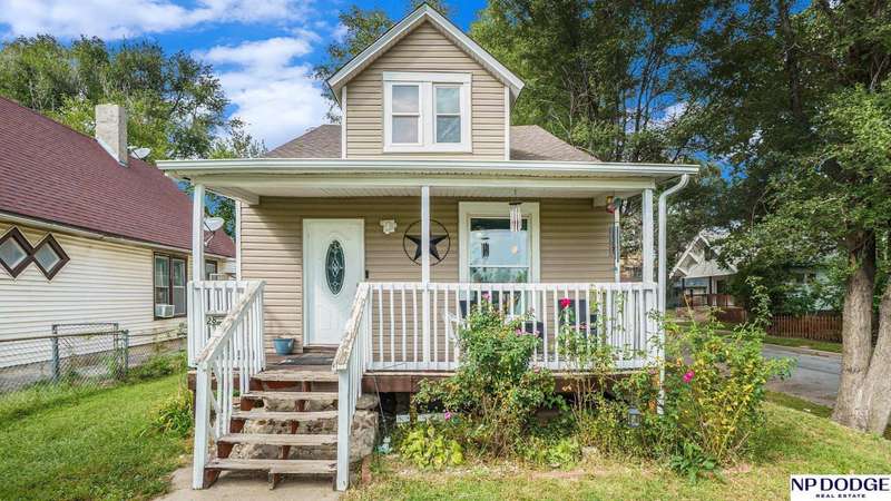 Welcome to your new home! This 1.5 story home sits on a corner lot with convenient access to the interstate, close to downtown, nearby grocery, parks, and fire station. Updated features includes completed vinyl siding, newer paint and floors, and some new windows all throughout the main floor. Roof was done in 2024. Fenced yard for privacy and the Omaha Public Library right in front of the house. No front neighbors! This home has 3 bedrooms and 2 full bathrooms. The primary room is on the second floor with a full bathroom along with extra space for an office area or large closet. The main floor consists of 2 bedrooms and the second full bathroom. From the dining area to the kitchen is where you will find the gas stove top and stainless steel refrigerator. Only Kitchen appliances will stay. Schedule a showing today!