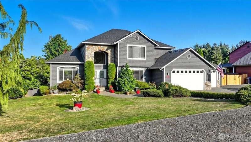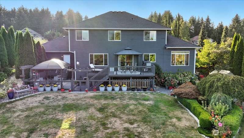 Find your paradise in Lake Stevens! First time on the market! This beautiful 4 bedroom 2-story home is surrounded by magnificent 2 acres of Awesomeness! Breath-taking sunrises to the mountain views of the Three Fingers & Whitehorse Mountain, this home is nothing short of magic. 1-acre beautifully landscaped & maintained for your enjoyment, 1-acre of forest. Enjoy your bountiful fruit trees, blooming flowers, Ff yard and all that nature brings. Capture the views from the family and living rooms, kitchen, deck and bedrooms. Covered deck and gazebo w/plenty of space for entertainment. 3car garage, two generators, new electrical panel. Away from the hustle and bustle. Here is the place to slow down and smell the flowers. NO HOA! Welcome Home