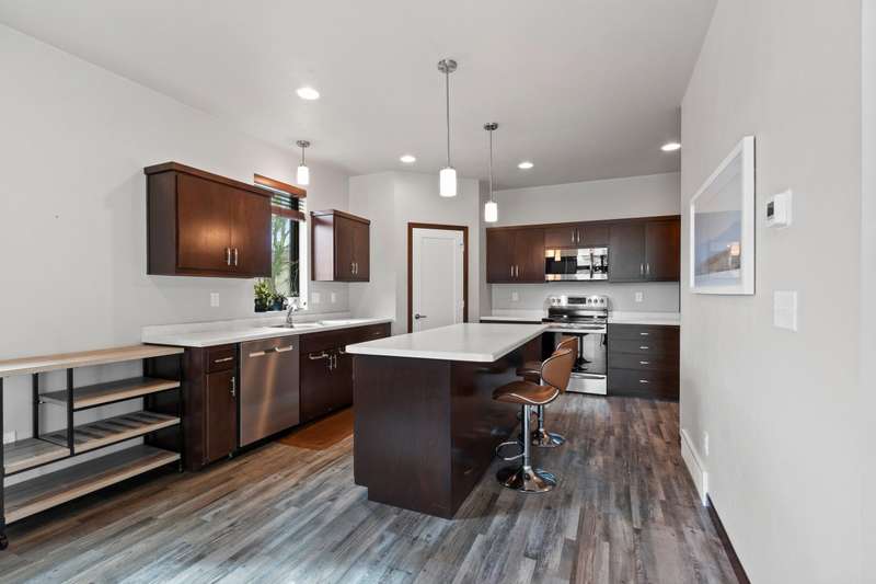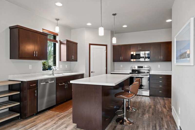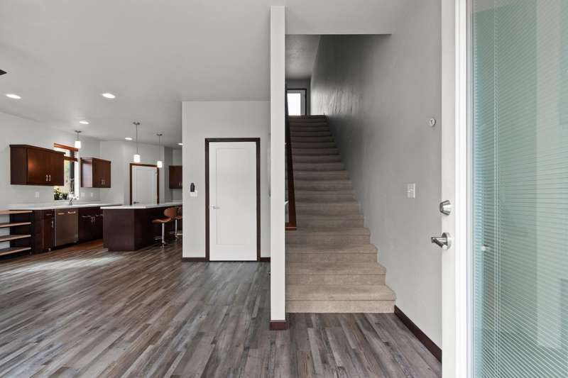 Contemporary Townhouse at its Finest, Close to Everything! Zero lot line. Enjoy Condo-like Living without the HOA. Open Concept from kitchen to Liv Rm, Large Kitchen Island and Pantry! All Kitchen Appliances Included. Spacious Upper Master and 2nd Bedrooms with Own Bath. Master w Dual sinks, walk-in shower and closet! Upper Laundry for convenience! Additional Lower-Level 3rd Bedroom (per assessor) or could be your Home Office or extra liv space & Full Bathroom. Huge Deck above Garage, perfect for entertaining your guest’s w/ a view! Shared Driveway, Zero Lot Line, Exterior is Block/Composite.
