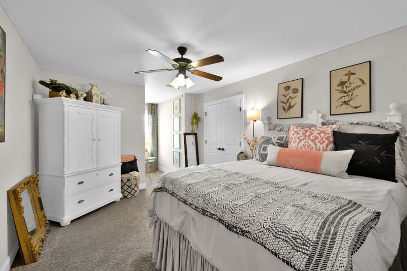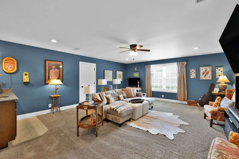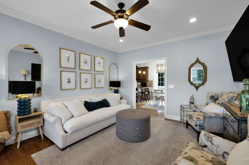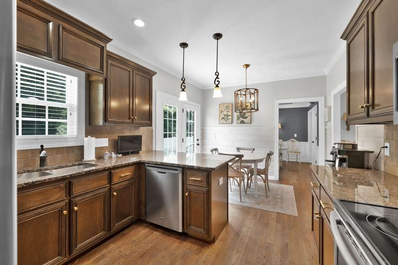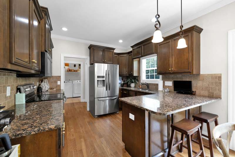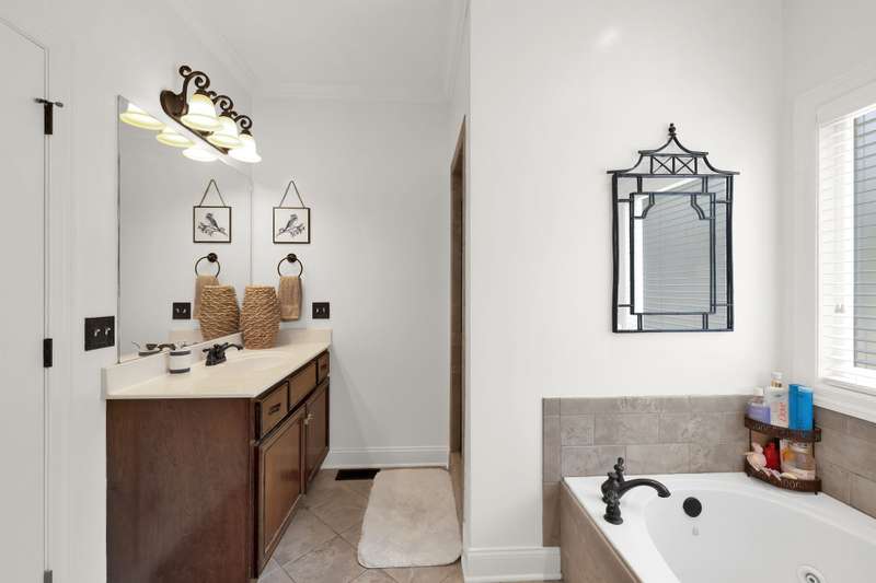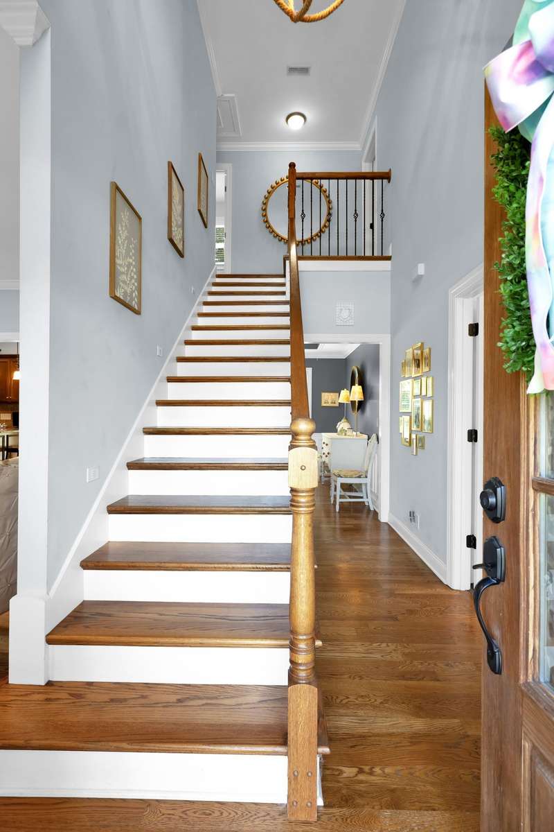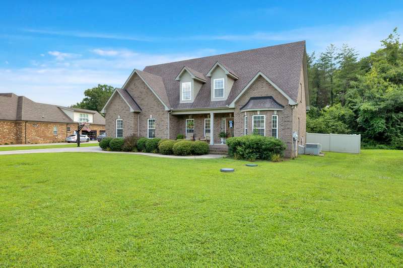 Rachels Place is a hidden gem for those seeking larger lots, a sidewalk community, no city taxes, and community camaraderie. Come visit this adorable all-brick home w/3 bedrooms, primary bedroom located down with trey ceiling and spacious bath, his/her closets. Open living room, formal dining room, spacious kitchen with granite counter tops, large laundry room , 1/2 bath. 2 bedrooms upstairs, large bonus room with a wet bar, walk-in storage. Water purification system remains. Good size yard with tree-lined backyard with 6' vinyl fence. 9 ft ceilings on main level.