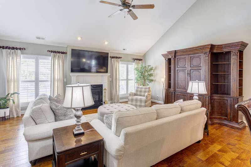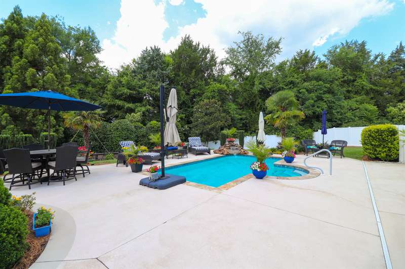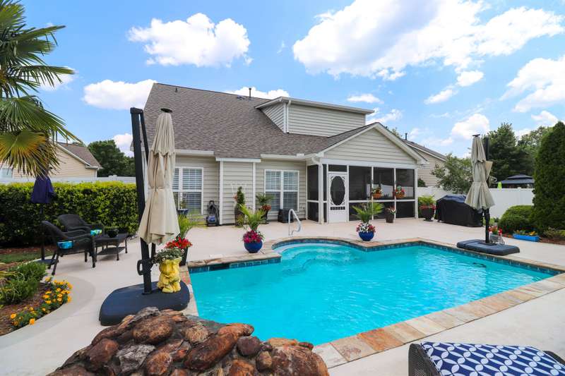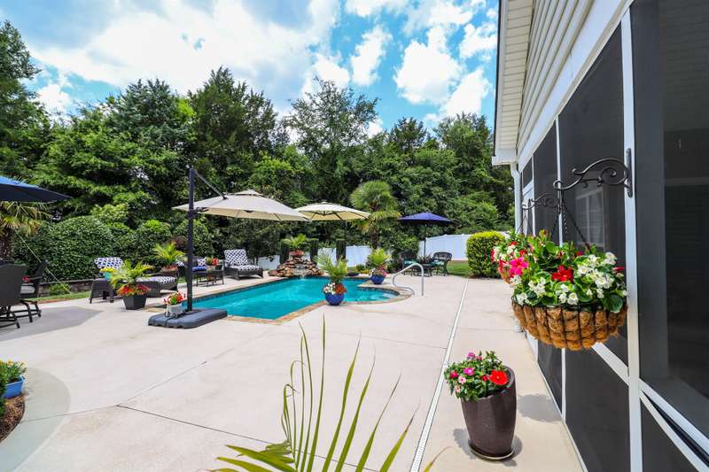 Patio Home in Laurel Park ? Private Cul-de-Sac w/Pool! One owner!Tons of upgrades (at purchase & after)-beautifully maintained 1.5-story-nestled on one of the largest backyards in patio section (.34 ac)?perfect for outdoor entertaining/relaxing-10' x 20' heated pool, new pump & heater (2025) & cool decking to keep things cool on hot days.Spacious floorplan offers two primary suites?one on the main level. Main floor features rich HW flooring, abundant natural light, and open-concept GR w/cathedral ceiling, gas FP, and seamless flow to screened porch/pool area.Chef's kitchen - upgraded cherry cabinets w/roll-out drawers, quartz countertops, and spacious layout perfect for cooking. Rounding out main level-office/4th bed, laundry, half bath.Upstairs - cozy loft, second primary suite, addt'l bedroom/full bath, plus walk-in attic storage.Addt'l highlights-Plantation shutters throughout, Irrigation system (front & back), tons of storage (custom closets). Full upgrade list available!