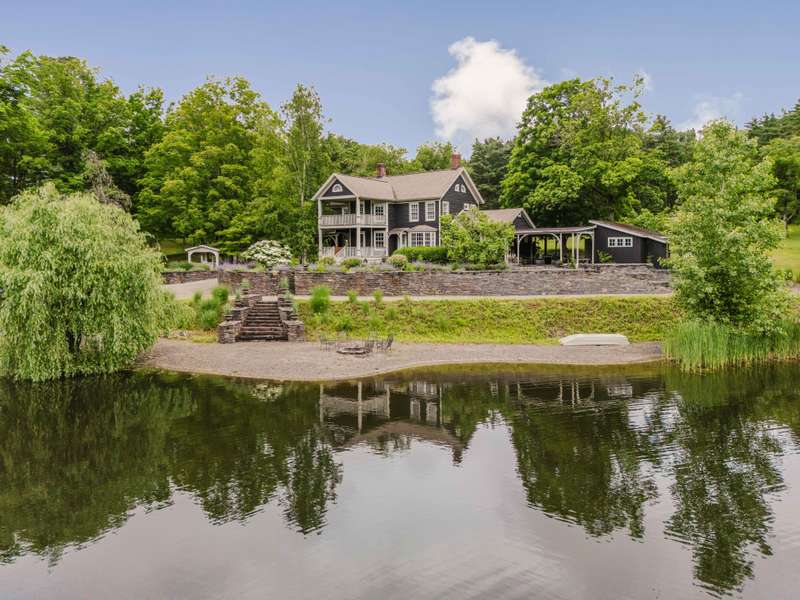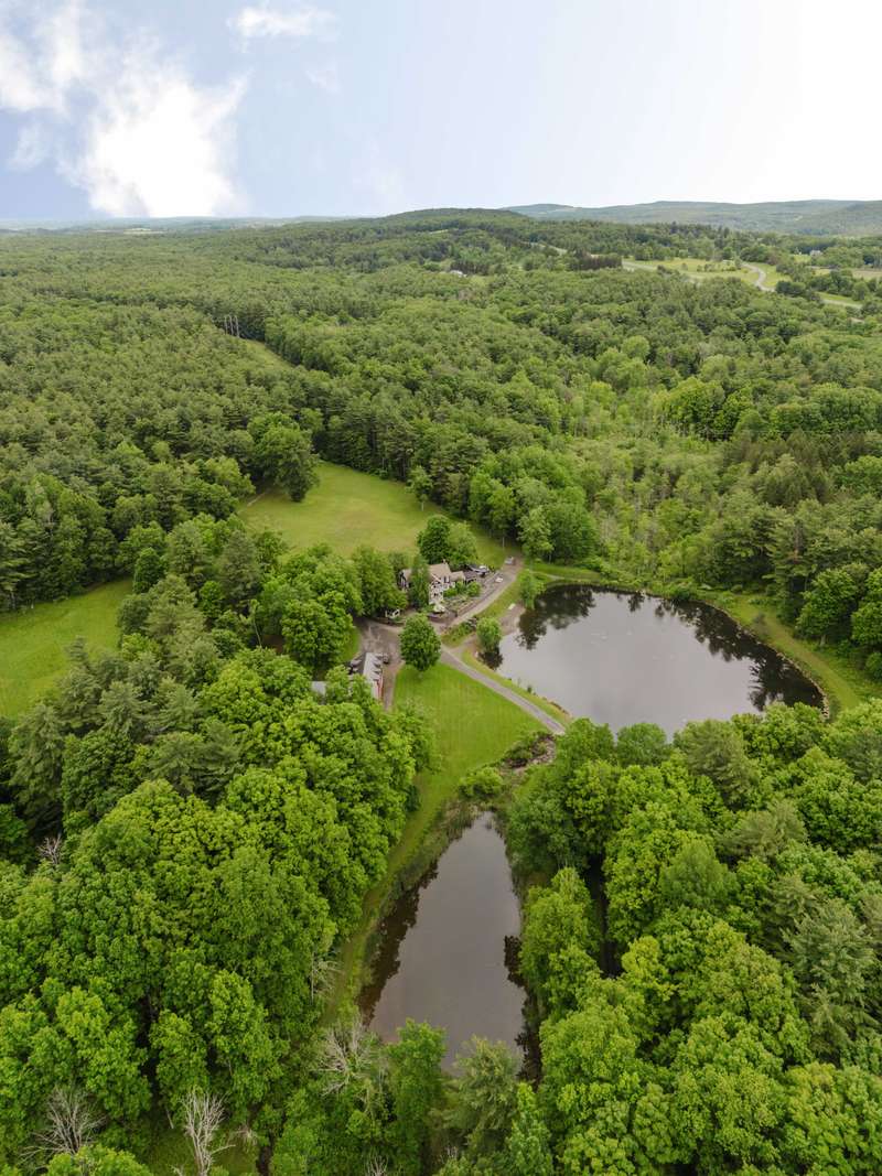 Welcome to Mac Brown Waterhouse, a storied 119-acre estate set within a hidden valley offering complete seclusion and timeless beauty. The original 1830s farmhouse is tucked away at the end of a private lane in Claverack, NY, where the road terminates in a round gravel driveway anchored by the property's original stone well. Two large ponds grace the land, one directly in front of the house that is aerated and swimmable. Sited among meadows and mature woodlands, the main house, upgraded barn, and charming studio shed are framed by terraced stonework, a network of trails, and thoughtfully designed gardens. The setting is peaceful, restorative, and deeply connected to the land, yet only a short drive to both Hudson and Great Barrington. The antique farmhouse offers four bedrooms and two bathrooms across 2,825 square feet, where original details like moldings, wood floors, and Dutch doors preserve its old-world charm. A generous double living room and an office nook outfitted with Vitsoe modular shelving, lead to a bright dining area, kitchen, and direct access to the patios and gardens. The layout encourages an easy indoor-outdoor rhythm, with covered porches, and multiple terraces for lounging, cooking, or gathering. Two staircases rise to the upper-level bedrooms, where the southern exposure fills each room with light, and the attic has been insulated to improve year-round comfort. Throughout the home an intentional color palette lends softness and cohesion. The overall design brings together European sensibility and Hudson Valley character, balancing utility with ease, warmth, and quiet sophistication. Across the garden sits a fully insulated, historic barn that has been transformed into a large-scale creative studio, complete with a bathroom with a clawfoot tub, kitchenette, updated electrical and HVAC. A detached potting shed offers another versatile space, ideal as a garden studio, writer's nook, or future guest cottage. It's connected to an outdoor bath deck that invites restorative soaks beneath the stars with its fireplace, clawfoot tub, and outdoor shower. Next to the house, a carport with EV charging and a full-property generator ensures comfort and continuity year-round.The primary pond is the centerpiece of the propertyaerated, swimmable, and bordered by a pebble beach and firepit. It's ideal for swimming, birdwatching, or evening gatherings. Cranes, herons, and even bald eagle sightings make it a birdwatching paradise. Terraced gardens by The Secret Gardener surround the home with a cottage-style blend of flowering plants, herbs and vegetables. Rewilded fields and meadows lead to two miles of maintained trails through native grasses and towering trees. The land qualifies for a forestry exemption and includes multiple cleared areas, offering potential for a guest house, horses, or even a helipad. Whether hosting music on the lawn, harvesting from the garden, or watching the changing sky reflect in the pond, Mac Brown Waterhouse is a rare legacy estate and true sanctuary.