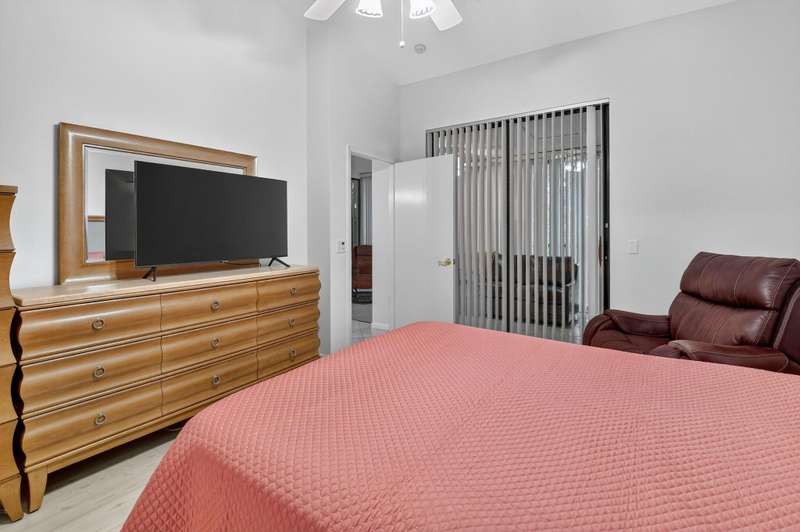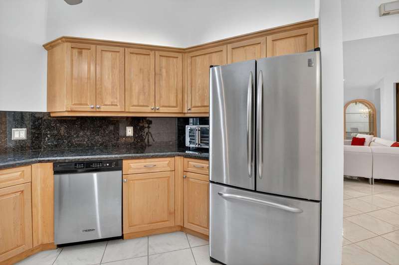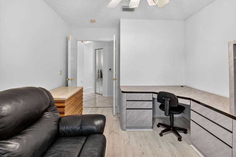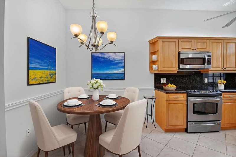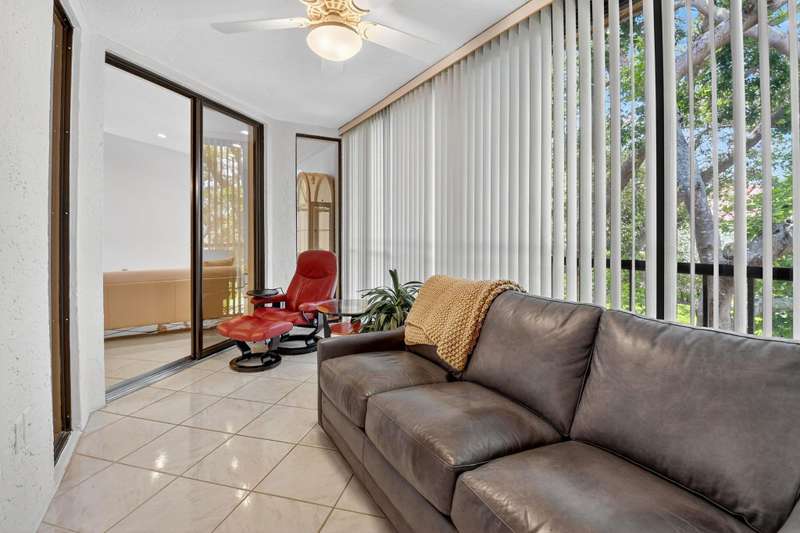 This Grandi model condo boasts its own private elevator and private staircase just inside the front door. Once upstairs, you will be greeted by a freshly painted home with soaring vaulted ceilings and a bright, open layout designed for comfortable living and entertaining. The generous floor plan offers two bedrooms plus a den that can easily be converted into a third bedroom to suit your needs. The updated, spacious kitchen is sure to inspire your inner chef. Features include granite countertops and matching backsplash, stainless-steel appliances, a double oven, a large pantry, and abundant storage space. Retreat to the master suite, which offers a large walk-in closet, linen closet and en-suite bathroom, complete with dual sinks, a vanity, a relaxing Roman tub, and walk-in shower.