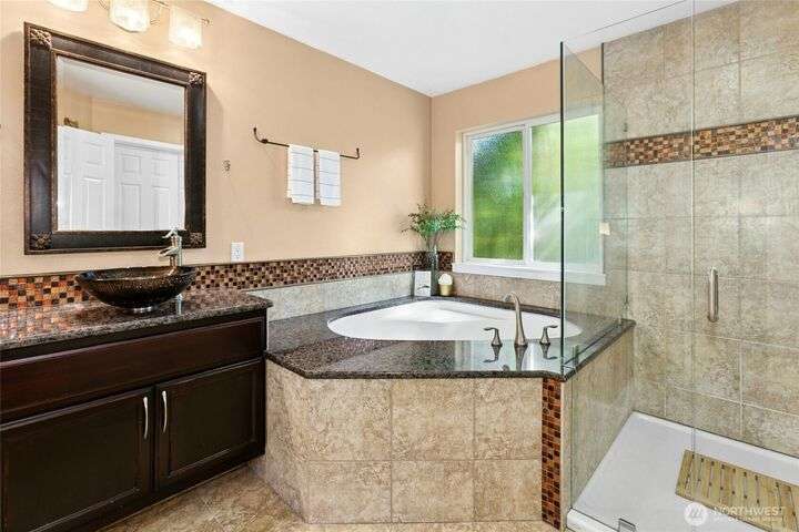 Tucked away in Bothell’s sought-after Dambres Park, this private retreat blends timeless charm with modern luxury. A gorgeous street presence invites you into a light-filled, versatile layout—4BD/2.5BA, main floor office & spacious bonus room. The fully remodeled kitchen & baths shine w/designer finishes. Outside your own backyard oasis awaits that offers a unique sense of privacy with lush landscaping, a pergola-covered BBQ station, firepit area, raised garden beds & fruit/berry bushes create the perfect gathering space. With new roof/skylights (2024), furnace/AC (2023) & 2 EV chargers in the 3-car garage this home is move-in ready. Steps from a peaceful greenbelt & in excellent Northshore School Dist—this is where comfort meets connection