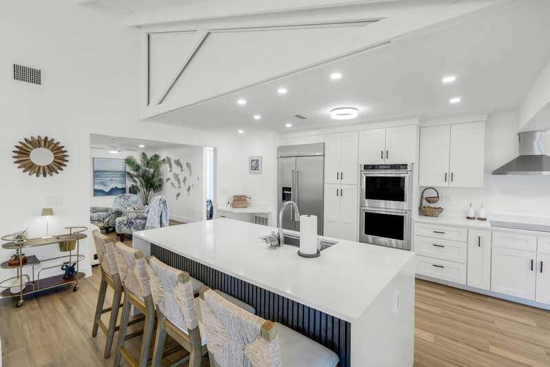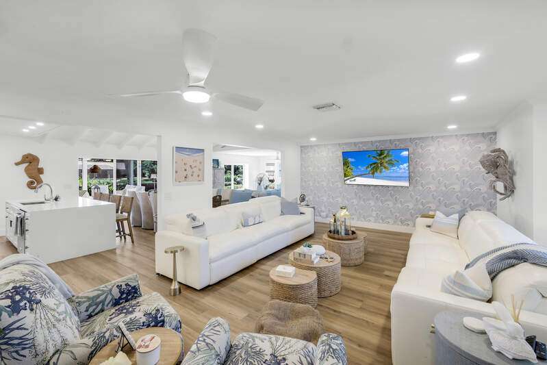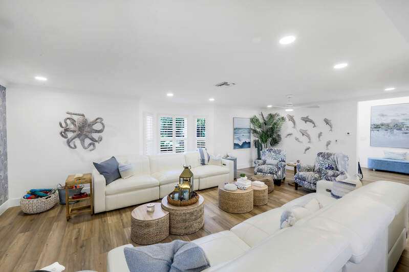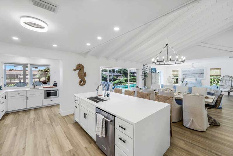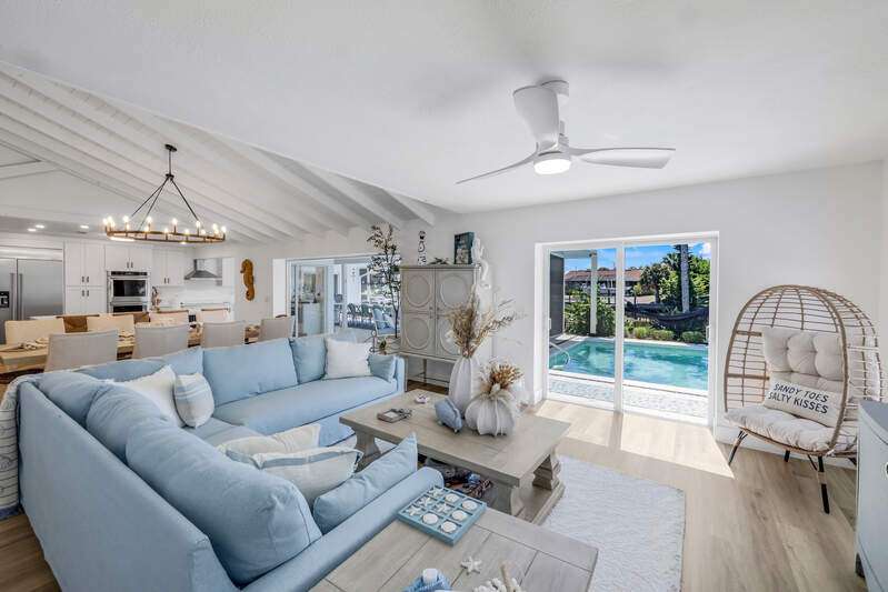 A Rare Waterfront Gem on Sanibel Island This beautifully renovated 6-bedroom + den, 5-bath Gulf access canal home is perfectly situated on an expansive cul-de-sac lot in the highly desirable Shell Harbor community on Sanibel Island's East End. With 217 feet of water frontage, a private dock with lift, and deeded beach access, this home offers the ultimate Florida lifestyle. First Floor Highlights: Spacious primary suite with direct access to the pool and a luxurious en-suite bath Separate guest suite with private entry, ideal for visitors or multigenerational living Open-concept kitchen, dining, and family room with large windows boasting stunning views of the pool, canal, and outdoor living areas Dedicated office/den, perfect for working from home Pool bath for convenient access from the outdoor entertaining space Second Floor Features: Four generously sized guest bedrooms and two full bathrooms Large laundry and storage room, ideal for extended stays or family living Outdoor Living: Expansive outdoor entertaining area with pool and water views Boat dock with water and electric and a new lift - just one bridge to the open bay Sunset views from your peaceful cul-de-sac location Location, Location, Location: Short stroll or bike ride to the Shell Harbor private beach access with parking Quick access to the Causeway, island bike paths, shops, and restaurants