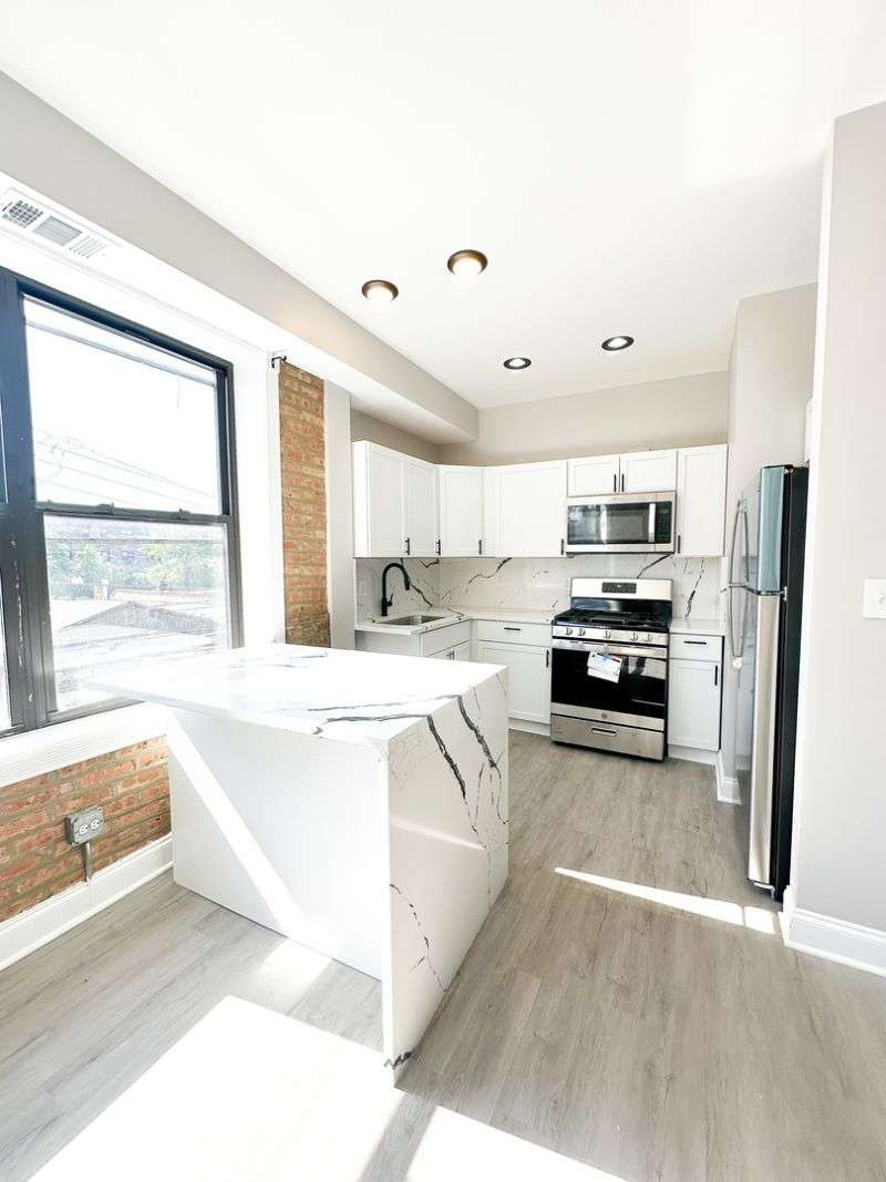 Wow! You will be very surprised and pleased with all this unit has to offer. Brand new gut rehab with 2 bedrooms, 2 bathrooms, in unit laundry and central heat and AC! The kitchen features beautiful brand new countertops, cabinets, appliances and a quartz island. Loft style high ceilings, wall to wall windows. vintage exposed brick walls, recessed lighting, newer steel deck with space for furniture and outdoor use and a secure gated entry complete this apartment. Great location near public transportation, fine Devon cuisine, shopping, parks and schools.