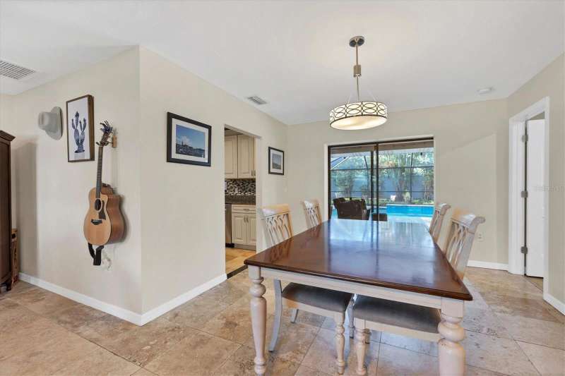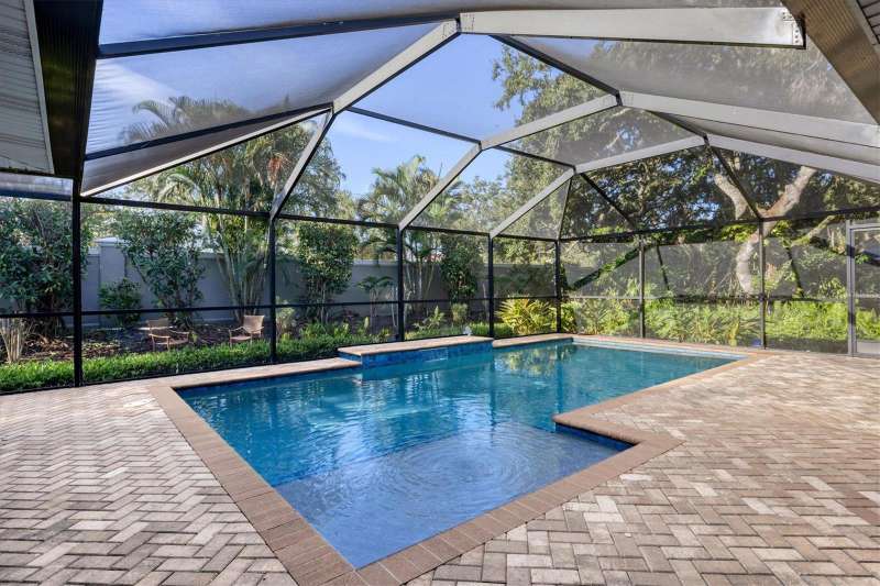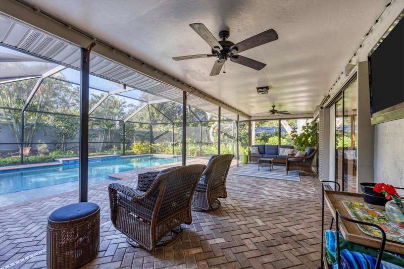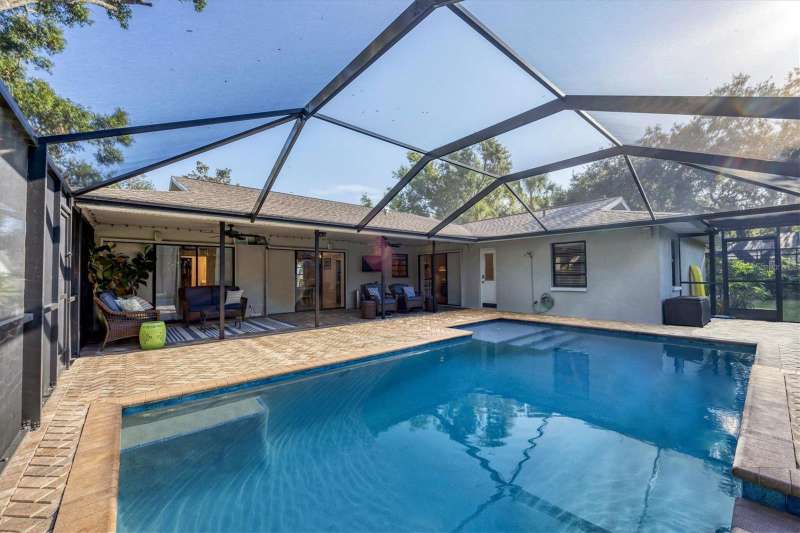 Welcome to Sherwood Forest! Located in a highly sought-after area of Central Sarasota, this private neighborhood is nestled amongst mature vegetation and beautiful oak trees, creating a serene and peaceful atmosphere. Custom built and meticulously maintained, this 3-bedroom, 2-bath residence features a functional split floor plan, a spacious 2-car garage, and an oversized paver lanai showcasing a heated saltwater pool (2020). The beautiful travertine flooring throughout the main living areas of the home leads you to the spacious formal living room which is highlighted by an oversized picture window that fills the space with natural light, while the adjoining dining room creates a perfect setting for gatherings. Designed for both comfort and connection, the kitchen showcases granite countertops, solid wood cabinetry, stainless steel appliances, and a large peninsula ideal for casual dining and entertaining. The primary suite serves as a relaxing retreat, featuring a walk-in closet with a custom ClosetMaid shelf track system and an updated vanity (2020). The guest bedrooms, complete with new laminate flooring (2022) and upgraded closet systems, share a beautifully modernized guest bathroom (2024). For added peace of mind this home has a newer roof (2023), fresh exterior paint (2023), new attic insulation (2023), and hurricane shutters (2019). Sherwood Forest offers the perfect blend of seclusion and convenience, with easy access to I-75, world-class beaches, top-rated schools, and University Town Center. Make sure you don't pass up the chance to see this extraordinary property. Schedule a showing today and discover for yourself why this neighborhood is so highly coveted. With its seamless combination of elegance, functionality, and charm, this home is poised to become your ultimate dream home.